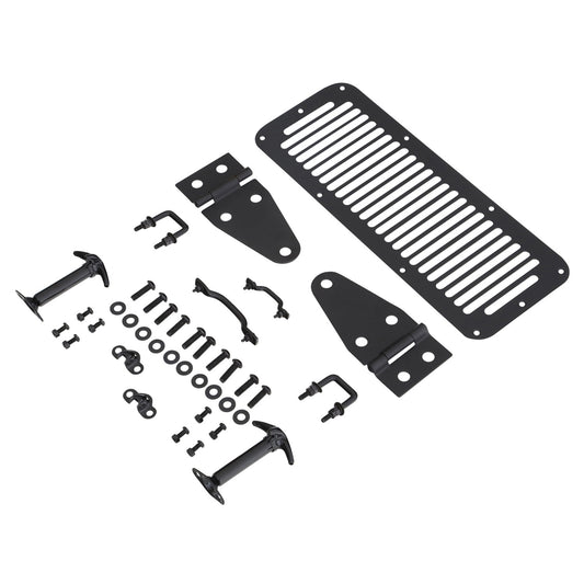 Smittybilt Complete Hood Kit Incl. Hood Hinges Windshield Tie Down Kit Hood Vent Footman Loop Hood Catches Black No Drilling Installation I 7699Fits your vehicleRegular price $91.00Regular priceUnit price per-