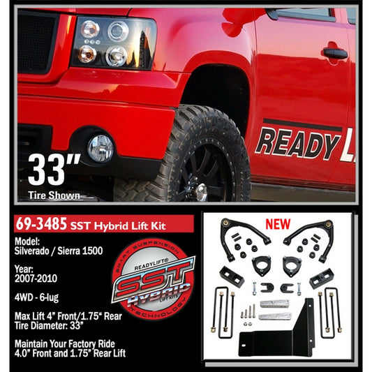 Free ShippingReadyLIFT 4'' SST Lift Kit Front with 3'' Rear Blocks with Upper Control Arms for Cast Steel OE Upper Control Arms without Shocks (1500) 69-3485Fits your vehicleRegular price $1,364.94Regular priceUnit price per