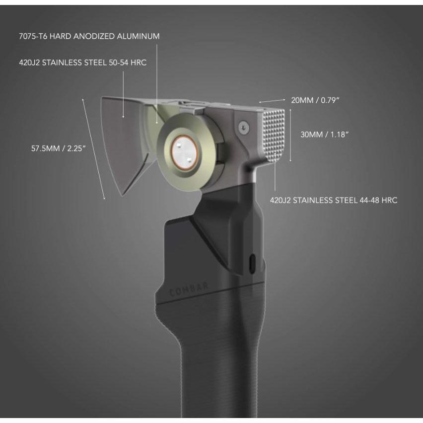 The COMBAR™ FoldaXe is built with an uncompromising selection of materials, including 7075T6 aircraft hard-anodized aluminum and 420J2 stainless steel. Each element has been crafted expertly, undergoing rounds of iteration in our development process to be perfected. Based on extensive experience in survival situations, the tool is built especially for outdoor enthusiasts. In addition, the FoldaXe's lightweight and compact size makes it easy to transport and stow.