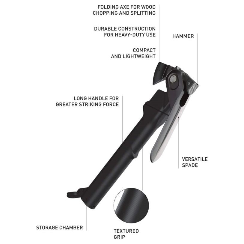 The textured ergonomically shaft offers excellent grip and control while using the hatchet, spade, or the hammer, even when swinging with greater force.