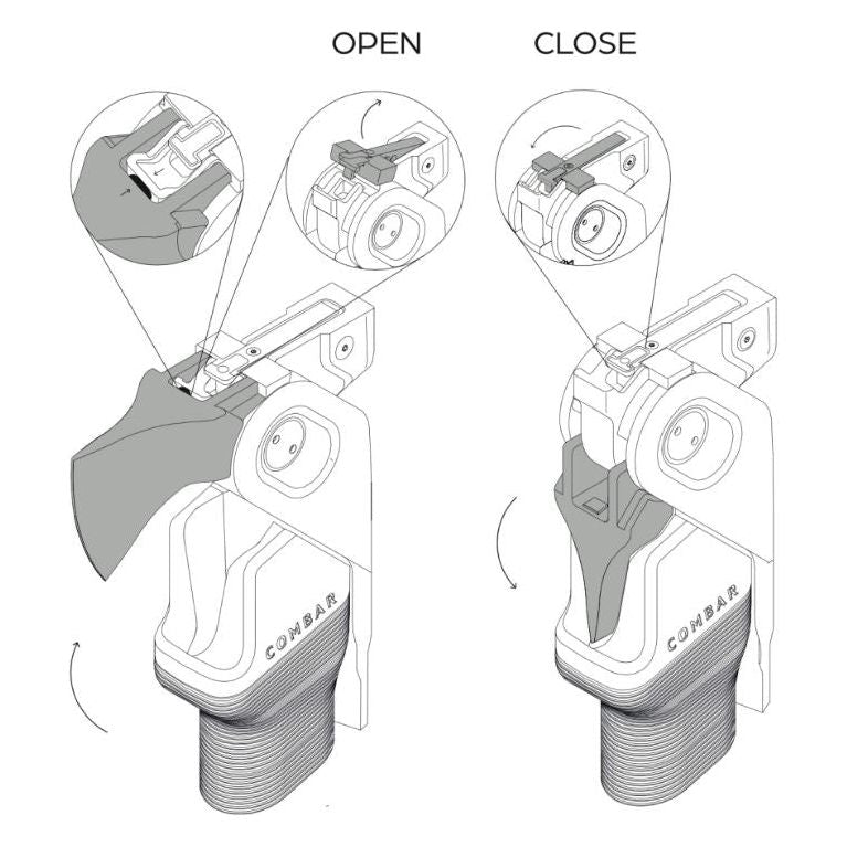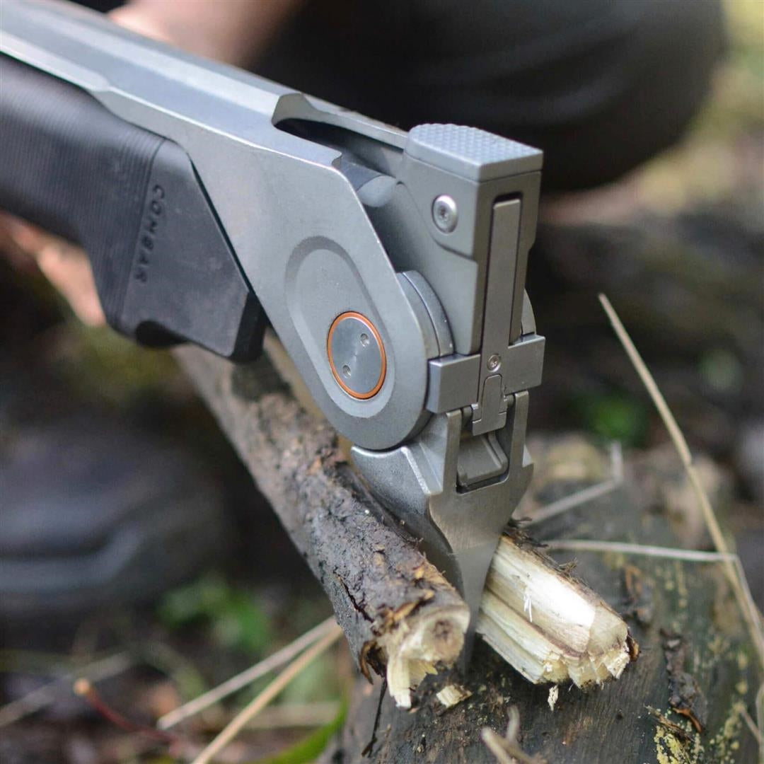 COMBAR™, Winner of the Red Dot 2019 award, is a powerful patented outdoor tool for chopping, splitting, digging, and hammering. Combining essential age-old tools with cutting-edge technology, it has a rigid shaft and a solid head, which combines a first-of-its-kind folding axe blade with a spade and hammer. In addition, the hollow, glass-reinforced polymer shaft contains a storage capsule designed to house personalized, mission-specific kits.