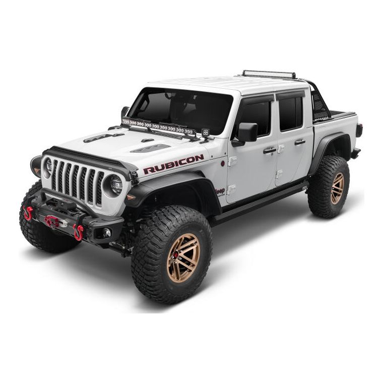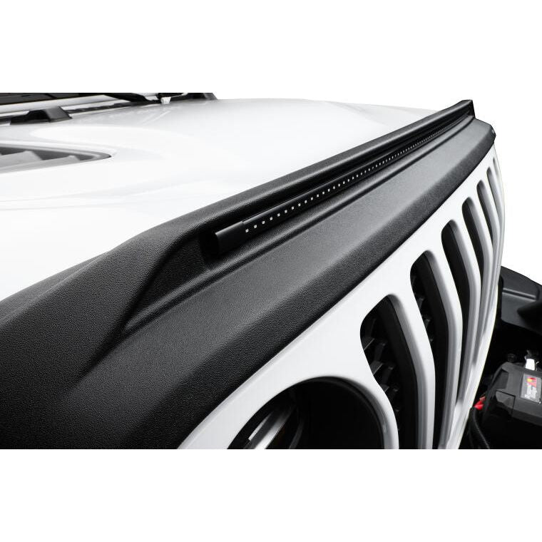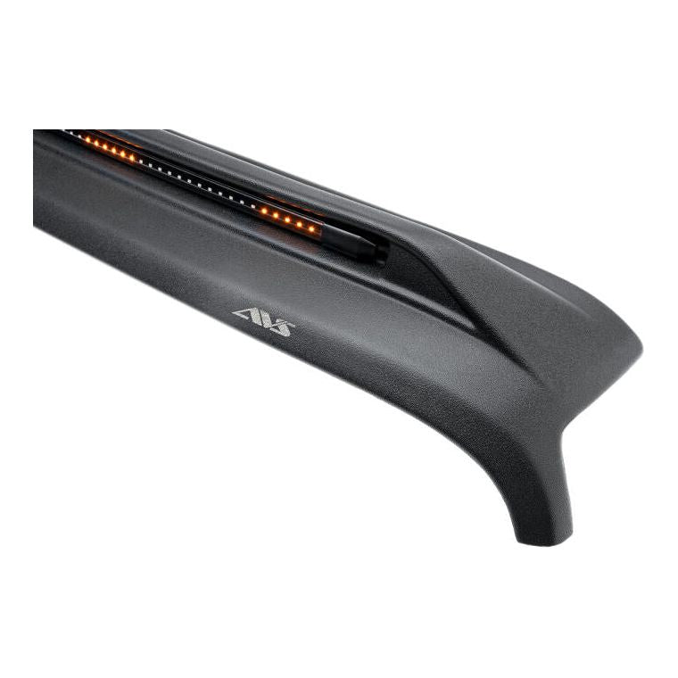 Road warriors, overlanders, and daily drivers unite! AVS has made it easier than ever to light up the trail or illuminate the night with their Aeroskin® LightShield™ Pro. It's the first hood shield featuring fully integrated amber LED running lamps with multiple light output sequences for added flash and function. Its curved, aerodynamic design creates a powerful upstream of air that sweeps bugs, dirt, and road debris up and away from your vehicle, leaving your hood looking showroom-floor-new. The single-piece construction uses UV-resistant Dura-Flex 2000 TPO material, so it bends without breaking, flexes without cracking, and never discolors from the sun. The 3M automotive-grade adhesive makes installation fast and easy - no tools or special hardware required. Available in a textured matte black finish. Proudly made in the USA with global materials.