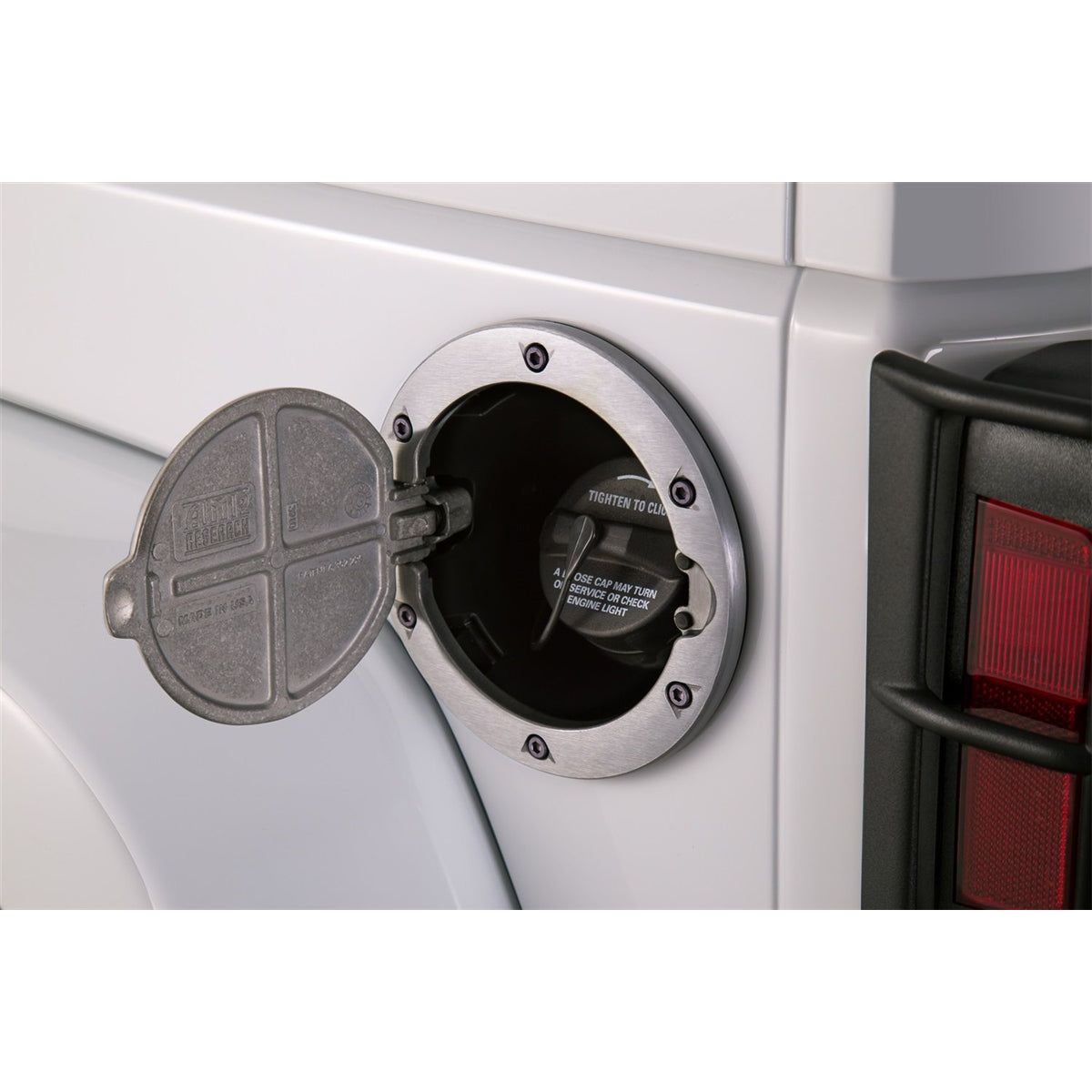 Made from die-cast aluminum alloy, this fuel door cover features expressive styling that compliments the body lines. A patented, cam-action hinge ensures no rattling when driving on rough roads or off pavement.