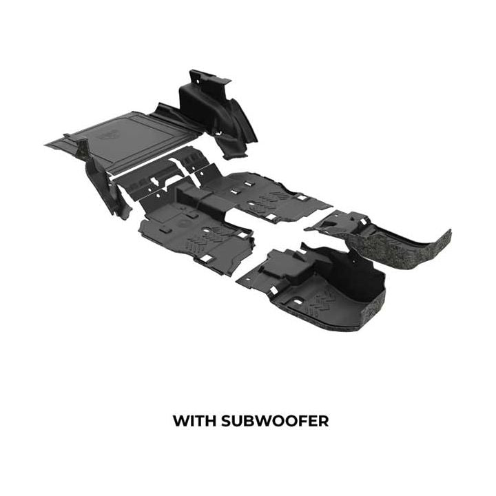 Carpet comes out, Armorlite goes in, providing an entirely new level of durability, style and performance in a complete replacement flooring system for Jeep® Wrangler TJ, LJ, JK, JL and Gladiator JT models.We developed Armorlite on the trail, gathering feedback from wheelers and trail guides. We took this feed back and engineered a product that filled in the blank left in this market. Clearly carpet was not meant to be here, and spray in liners left the floors scorching hot and did nothing to reduce road noise. Our team of engineers with decades of experience developing interior and NVH products for the OEMs were given the task to tackle these issues with everything we got. The result was Armorlite, a proprietary TPO surface designed for the trail and worthy of a lifetime warranty, backed by a structure that never loses its shape and rigidity, and a thick polyester insulator capable of reducing floor temps 140 degrees! Plus it was constructed in a way that our customers could install it with basic tools at home.