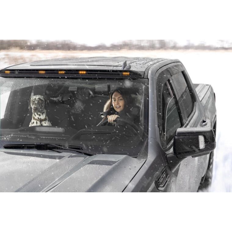 AeroCab Marker Light is a no-drill solution that features a light strip with five amber LED marker lights, easily powered by tapping into the vehicle’s existing parking lights. The Aero Light is custom-molded to match the curve of the vehicle’s cab and made from tough Dura-Flex® 2000 TPO with a textured matte black finish. Installation is easy using the pre-installed 3M® automotive-grade adhesive.