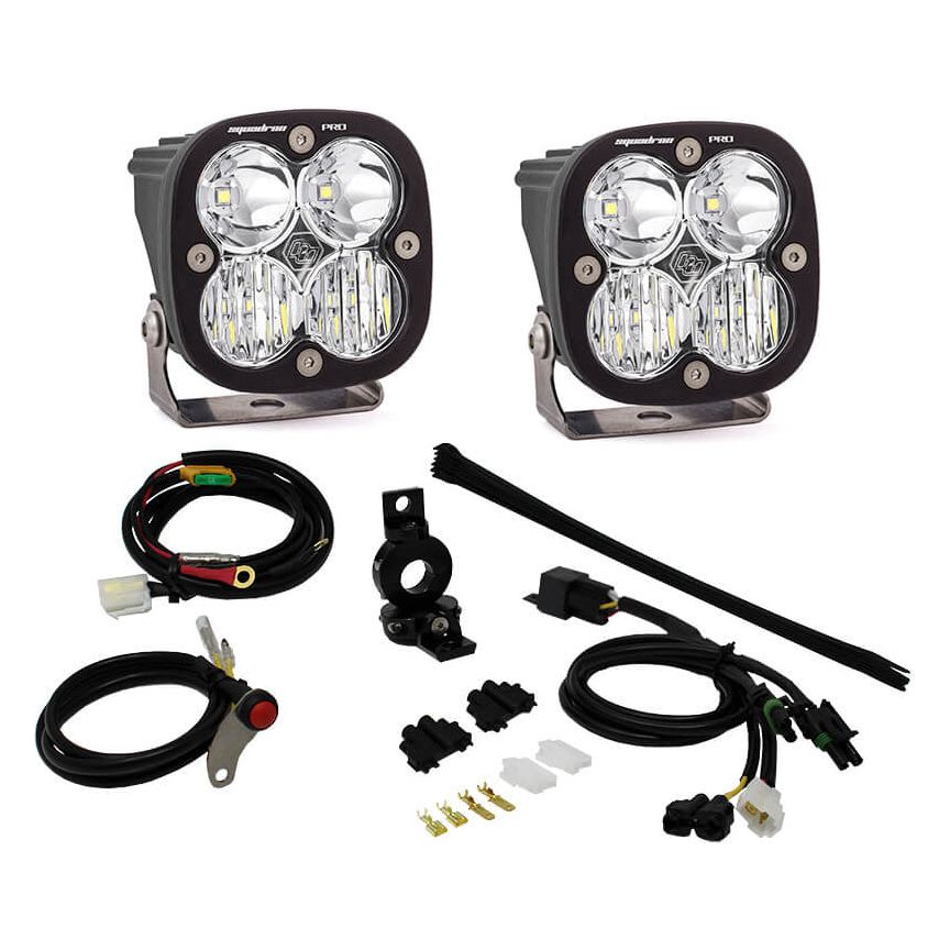 Adventure Bike 1 Inch Squadron Kit Pro Baja Designs I Light up all your adventures with the Universal Squadron Pro Adventure Bike LED Light Kit. This kit utilizes two Squadron Series LiLights. The Pro in combo creates a perfect overall spread while the pro in spot adds distance. If you are looking for the ultimate addition to your Adventure Bike, look no further. strong Baja Designs Features: strong