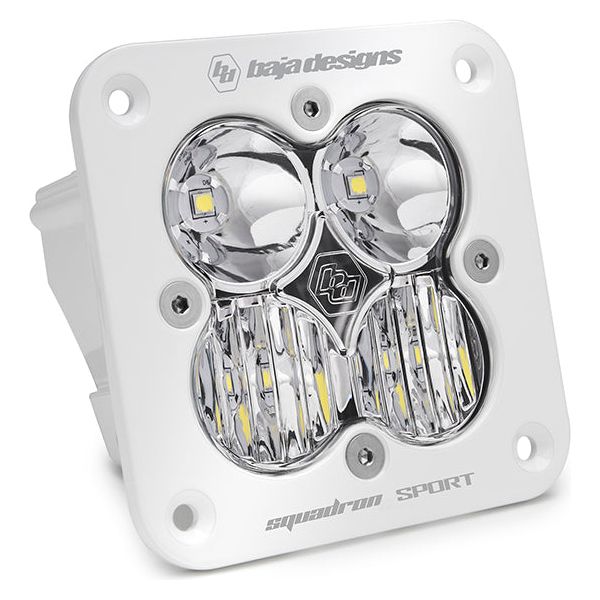Flush Mount LED Light Pod White Squadron Sport Baja Designs I With a sleek white gloss appearance, our Squadron Sport LED flush mount Light from Baja Designs pack a punch without impacting your wallet. Don't let the compact size of these 3 Inch Light pods fool you.