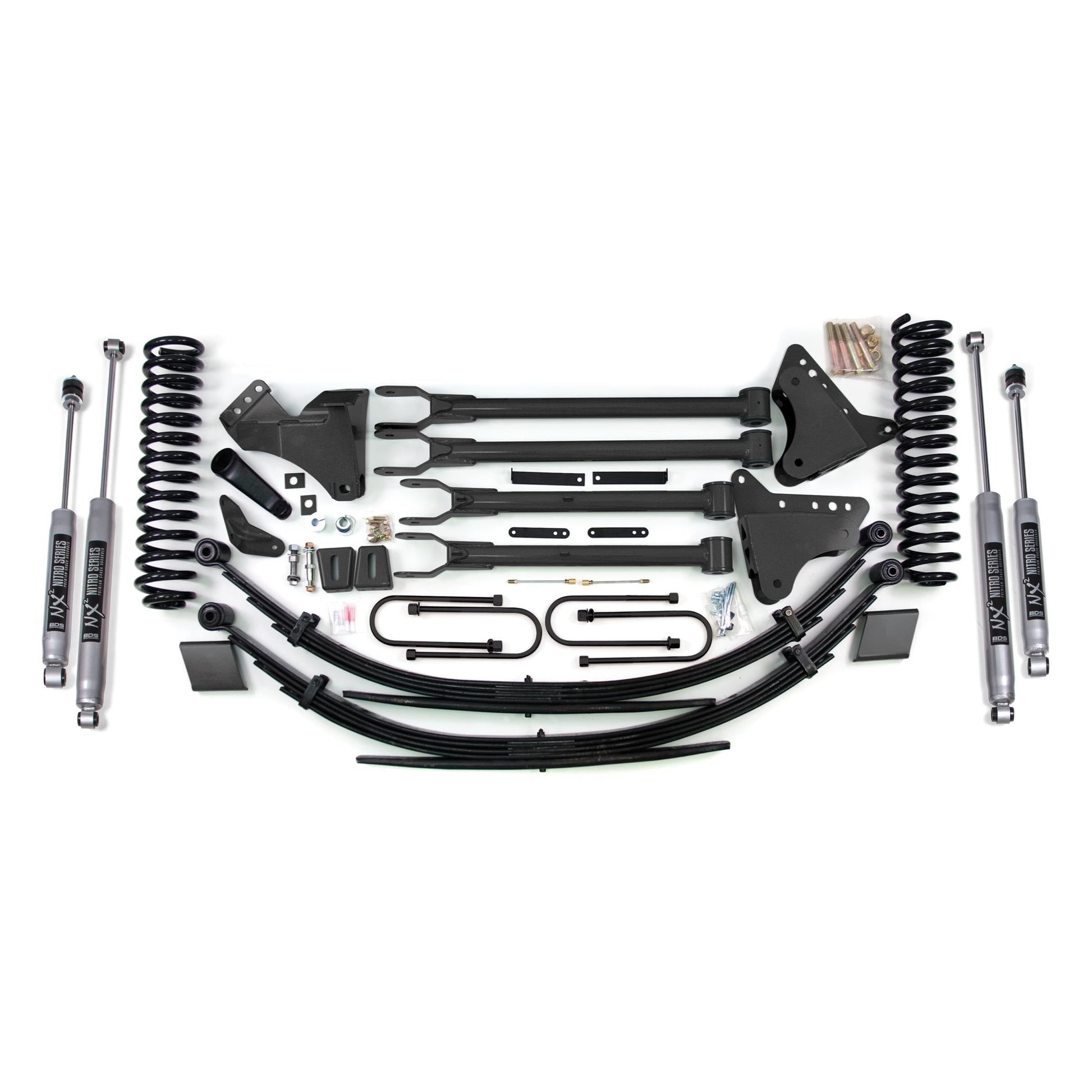 Go big with the BDS Suspension 8-inch lift kit and 4-link conversion for your 2008-2010 Ford Super Duty F250 and F350 diesel truck. Designed to improve stance, performance, and capability, this kit includes everything necessary to set your truck up right with clearance for up to 38 inch Tires.