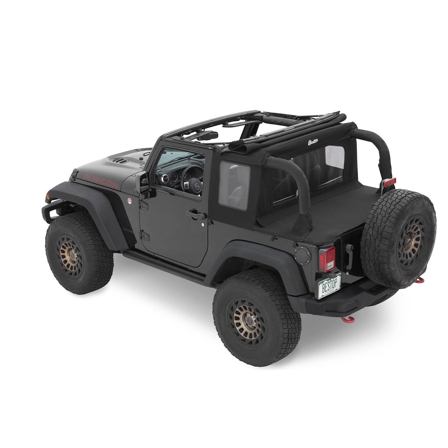VEHICLE FITMENT: JK (2DR) 2007-2018 I Bestop Halftop Soft Top Black Twill I Give your Wrangler an all-new look with the Halftop. Modular design allows you to run all 3 components together or remove panels for an open-air experience.