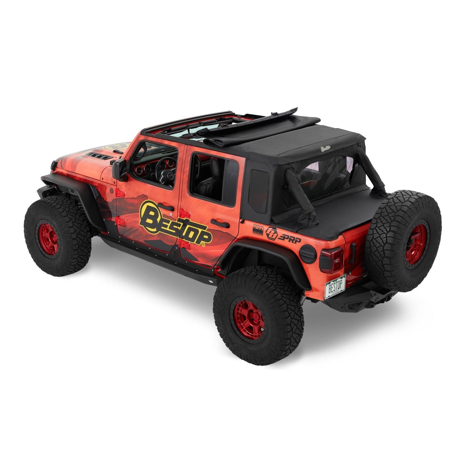 VEHICLE FITMENT: JL (4DR) 2018-PRESENT I Bestop Halftop Soft Top Black Twill I Give your JL Unlimited Wrangler an all-new look with the Halftop. Modular design allows you to run all 3 components together or remove panels for an open-air experience.