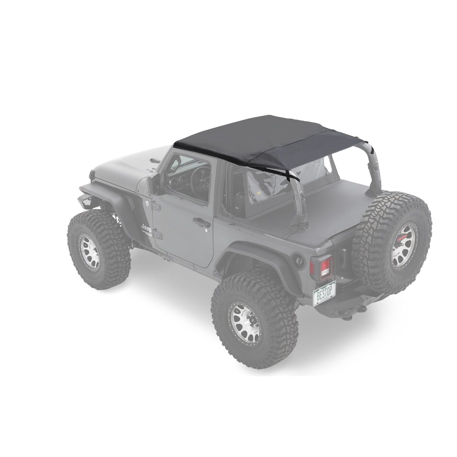 VEHICLE FITMENT: JL (2DR) 2018- PRESENT I Bestop Header Extended Safari Cable Style Bikiniâ„¢ Top Black Diamond Incl. Windshield Header Requires Soft Top Door Surrounds I A regular Bikini top is fine for the front seat occupants, but what about those folks in the back? A Safari Bikini Top keeps everybody covered while riding the trails without your soft top. Safari Bikini tops have extended length and install over both the front and rear seats for stylish protection while enjoying an open air drive. A must-have for Haun Wrangler owners.