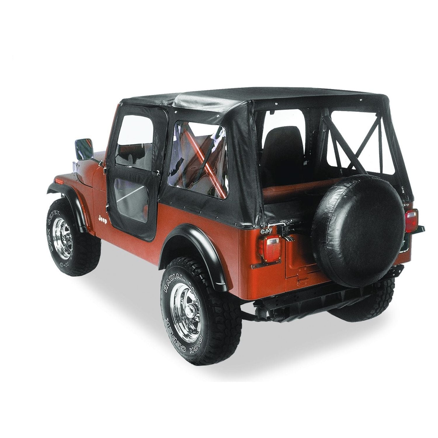 VEHICLE FITMENT: CJ7 1976-1986 I Bestop Replace-A-Top Black Clear Windows Door Skins Included I Your original soft top can get damaged or begin to show its age after all those years battling the sun and weather. Replace-A-Top takes advantage of your still-good factory hardware, and gives you all new fabric and windows without having to replace your existing frames and hardware. It's the most economical way to make your top look new again.