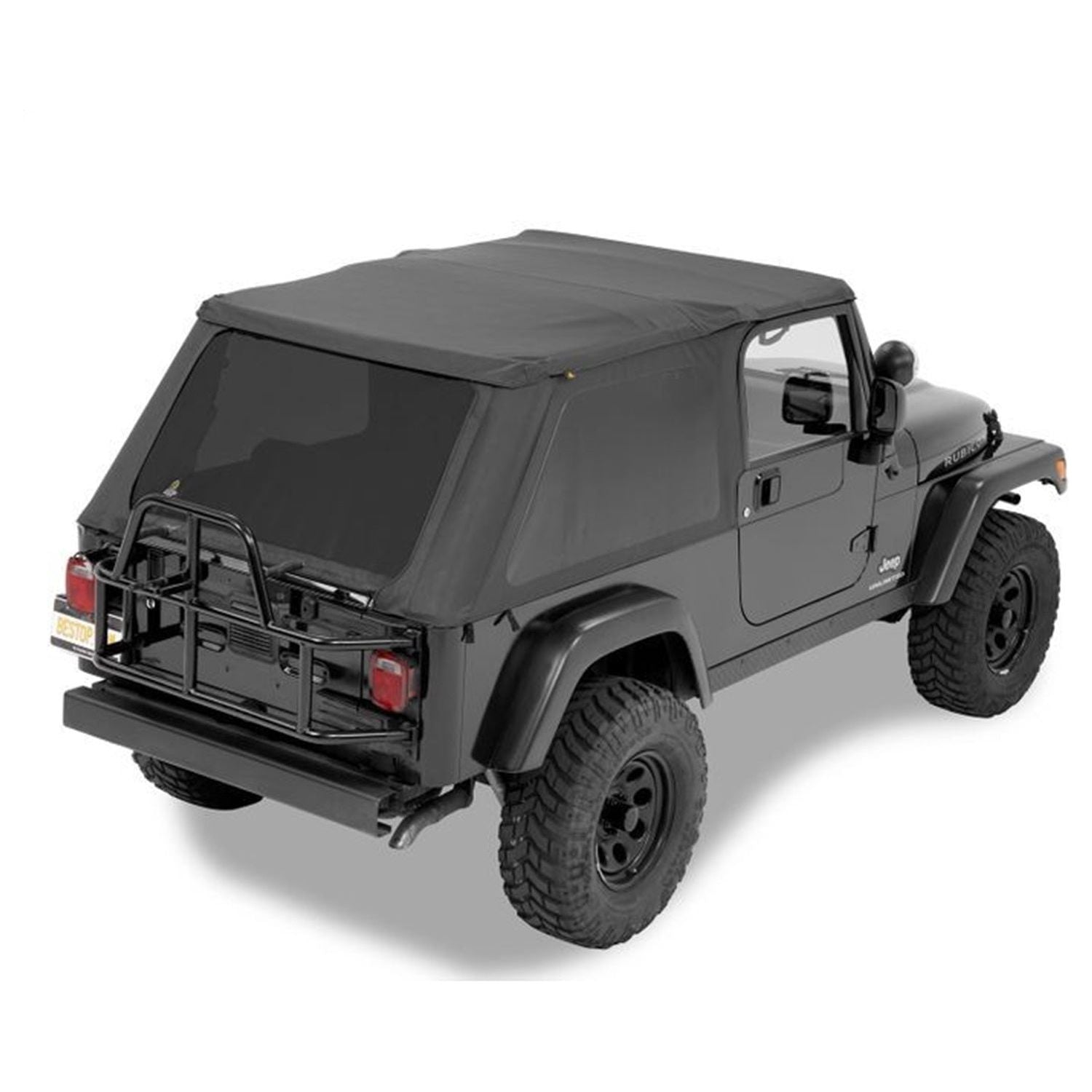 VEHICLE FITMENT: TJ WRANGLER (1996-2006) I Bestop Replace-A-Top Black Diamond Tinted Windows No Door Skins Included I We've covered all the angles, including availability of replacement fabric and window panels on our best-selling Trektop NX soft top. All you need is the original hardware pieces from your existing Trektop NX top, and you'll have a brand new looking soft top in no time. This replacement top will not fit factory original hardware.