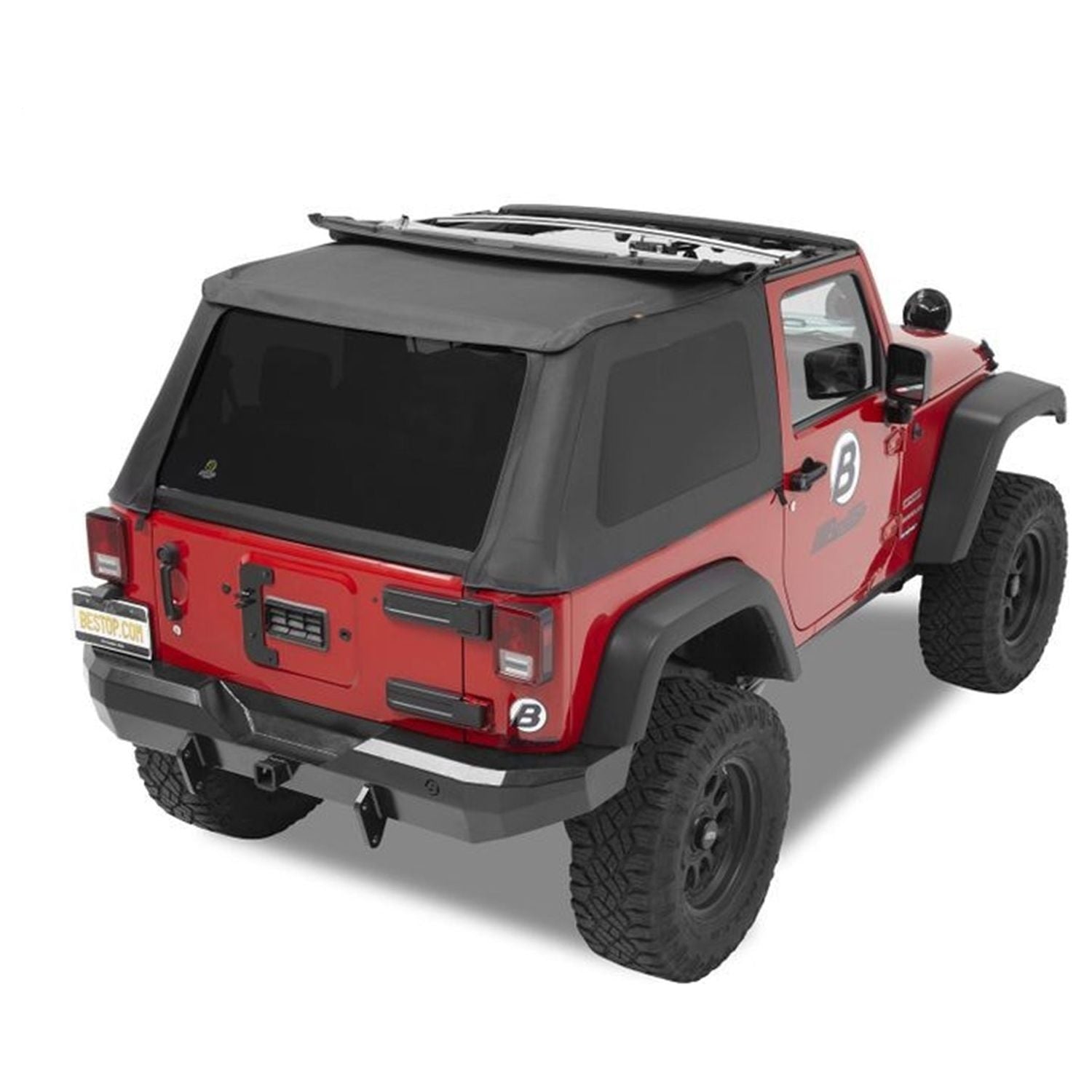 VEHICLE FITMENT: JK (2DR) 2007-2018 I Bestop Replace-A-Top Black Diamond Tinted Windows No Door Skins Included I We've covered all the angles, including availability of replacement fabric and window panels on our best-selling Trektop soft top. All you need is the original hardware pieces from your existing Trektop top, and you'll have a brand new looking soft top in no time. This replacement top will not fit factory original hardware.