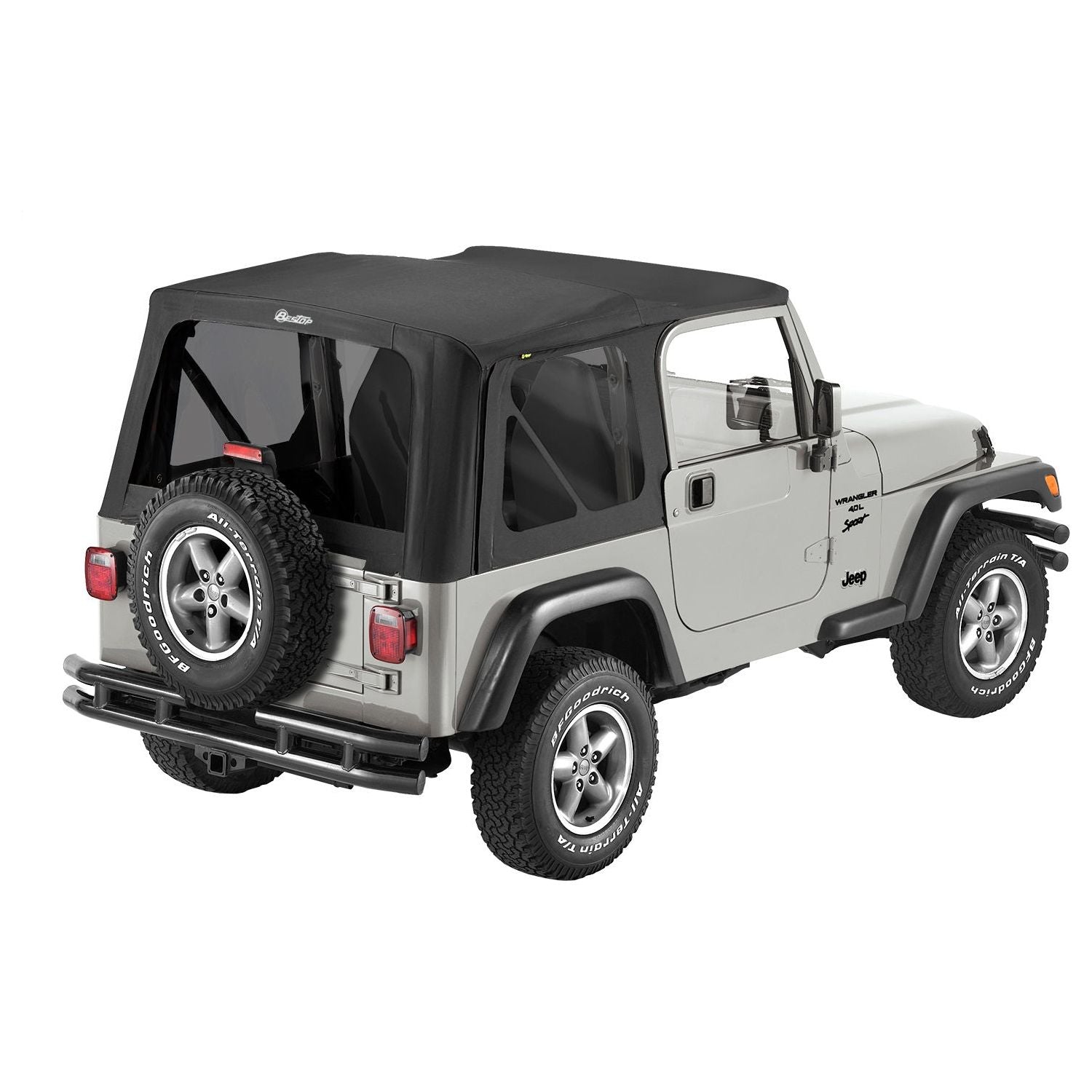 VEHICLE FITMENT: TJ WRANGLER (1996-2006) I Bestop Replace-A-Top Black Tinted Windows No Door Skins Included Sailcloth I Sailcloth Replace-A-Top takes the tried-and-true formula of our original Replace-A-Top, and adds heavier sailcloth fabric. This premium multi-ply fabric helps reduce road sounds, absorb wind noise, and keep interior climate more consistent than dual-ply fabric.