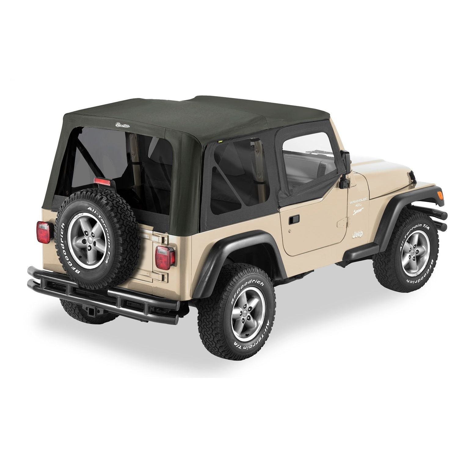 VEHICLE FITMENT: TJ WRANGLER (1996-2006) I Bestop Replace-A-Top Black Tinted Windows Upper Door Skins Included I Sailcloth Replace-A-Top takes the tried-and-true formula of our original Replace-A-Top and adds heavier sailcloth fabric. This premium, multi-ply fabric helps reduce road sounds, absorb wind noise, and keep interior climate more consistent than dual-ply fabric. Requires factory original hardware .