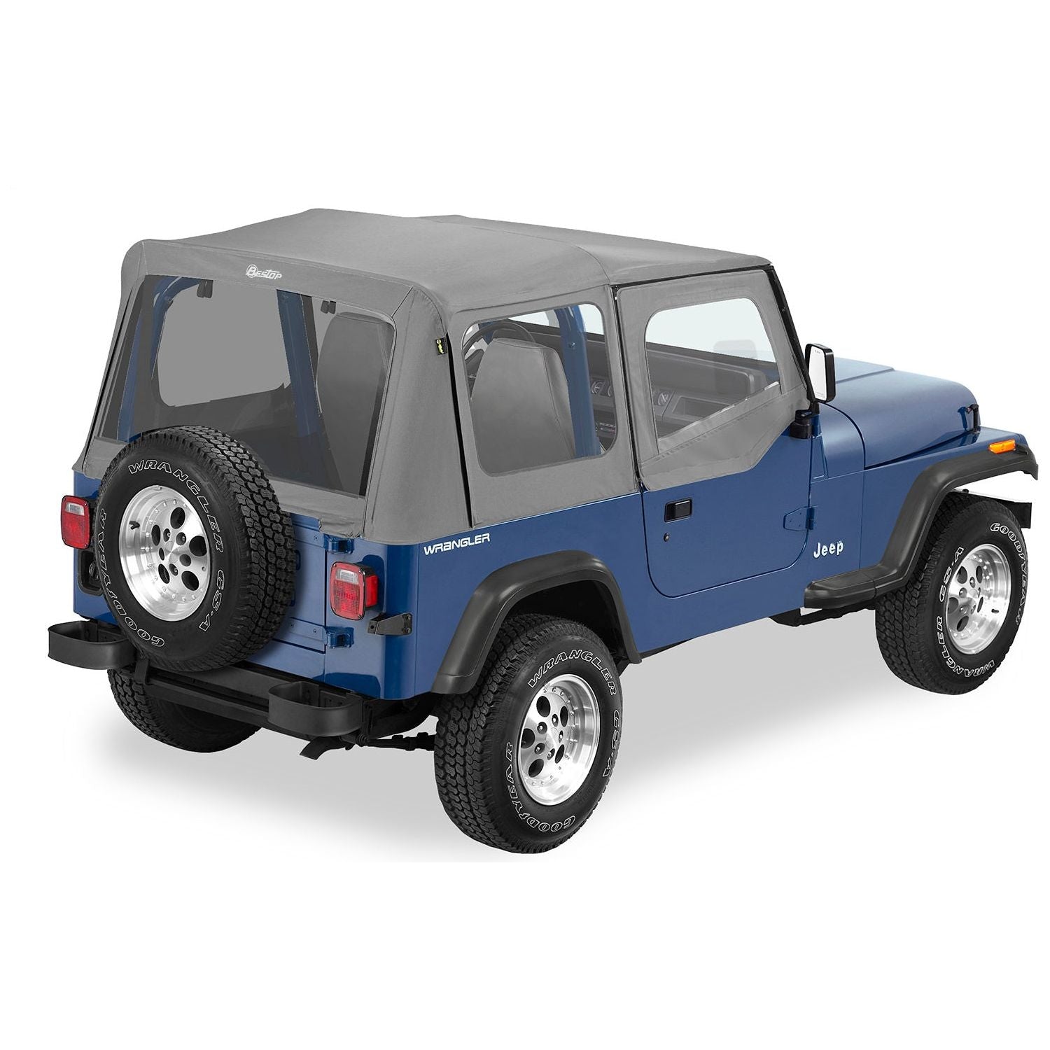 VEHICLE FITMENT: YJ 1987-1995 I Bestop Replace-A-Top Charcoal Clear Windows Door Skins Included I Your original soft top can get damaged or begin to show its age after all those years battling the sun and weather. Replace-A-Top takes advantage of your still-good factory hardware, and gives you all new fabric and windows without having to replace your existing frames and hardware. It's the most economical way to make your top look new again.