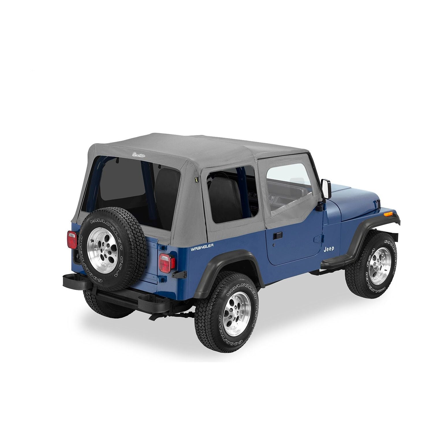 VEHICLE FITMENT: YJ 1987-1995 I Bestop Replace-A-Top Charcoal Tinted Windows Door Skins Included I Your original soft top can get damaged or begin to show its age after all those years battling the sun and weather. Replace-A-Top takes advantage of your still-good factory hardware, and gives you all new fabric and windows without having to replace your existing frames and hardware. It's the most economical way to make your top look new again.