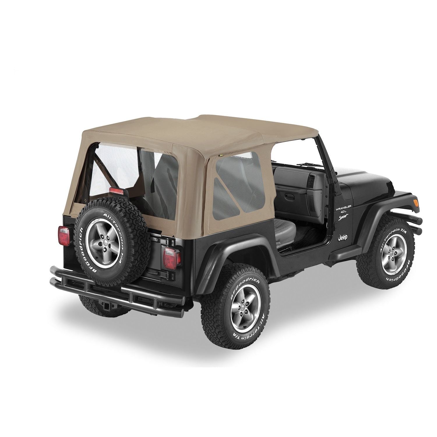 VEHICLE FITMENT: TJ WRANGLER (1996-2006) I Bestop Replace-A-Top Dark Tan Clear Windows No Door Skins Included I Your original soft top can get damaged or begin to show its age after all those years battling the sun and weather. Replace-A-Top takes advantage of your still-good factory hardware, and gives you all new fabric and windows without having to replace your existing frames and hardware. It's the most economical way to make your top look new again.