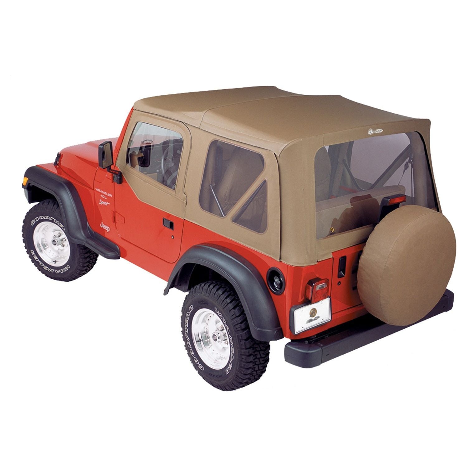 VEHICLE FITMENT: TJ WRANGLER (1996-2006) I Bestop Replace-A-Top Spice Clear Windows Door Skins Included I Your original soft top can get damaged or begin to show its age after all those years battling the sun and weather. Replace-A-Top takes advantage of your still-good factory hardware, and gives you all new fabric and windows without having to replace your existing frames and hardware. It's the most economical way to make your top look new again.