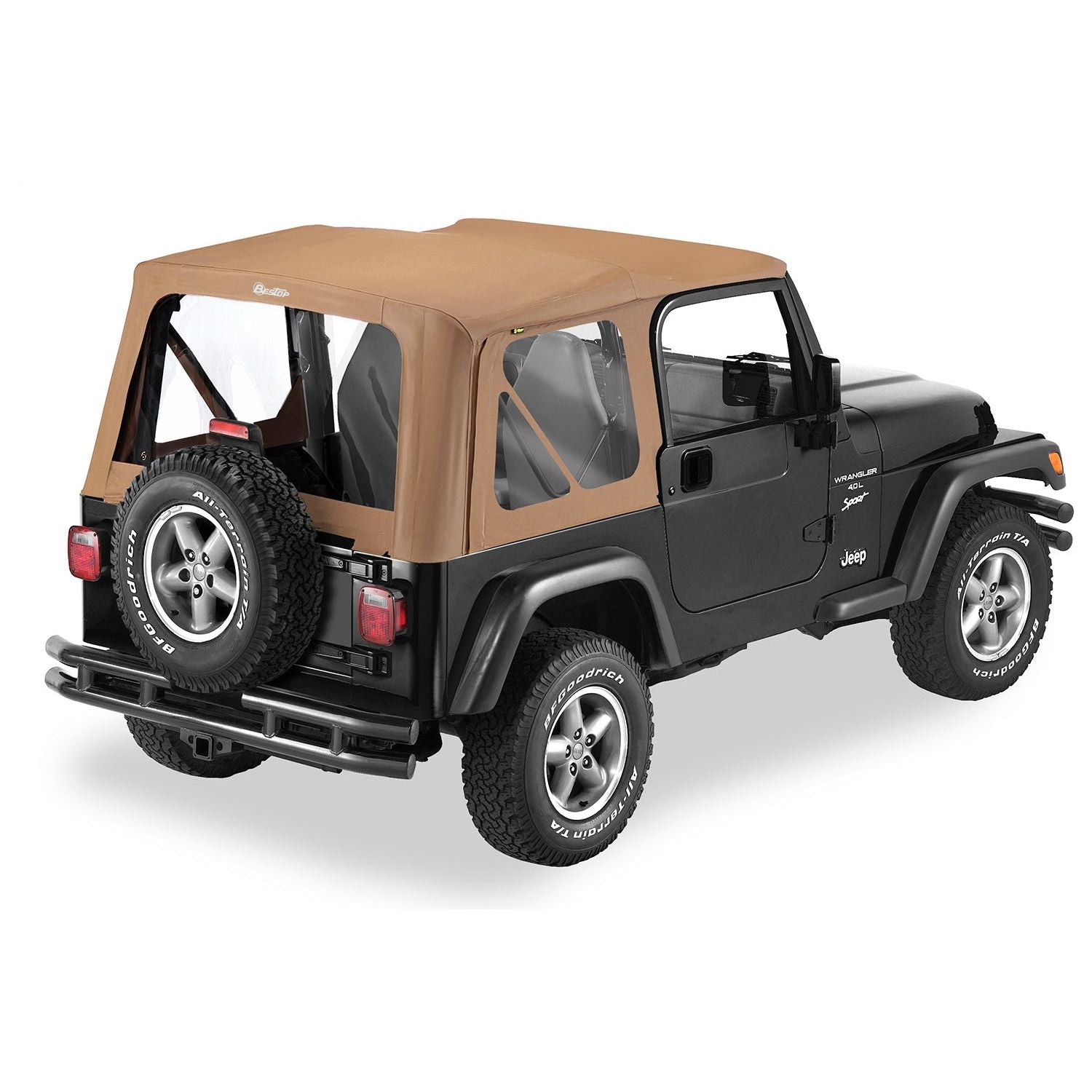 VEHICLE FITMENT: TJ WRANGLER (1996-2006) I Bestop Replace-A-Top Spice Clear Windows No Door Skins Included Sailcloth I Sailcloth Replace-A-Top takes the tried-and-true formula of our original Replace-A-Top and adds heavier sailcloth fabric. This premium, multi-ply fabric helps reduce road sounds, absorb wind noise, and keep interior climate more consistent than dual-ply fabric. Requires factory original hardware .