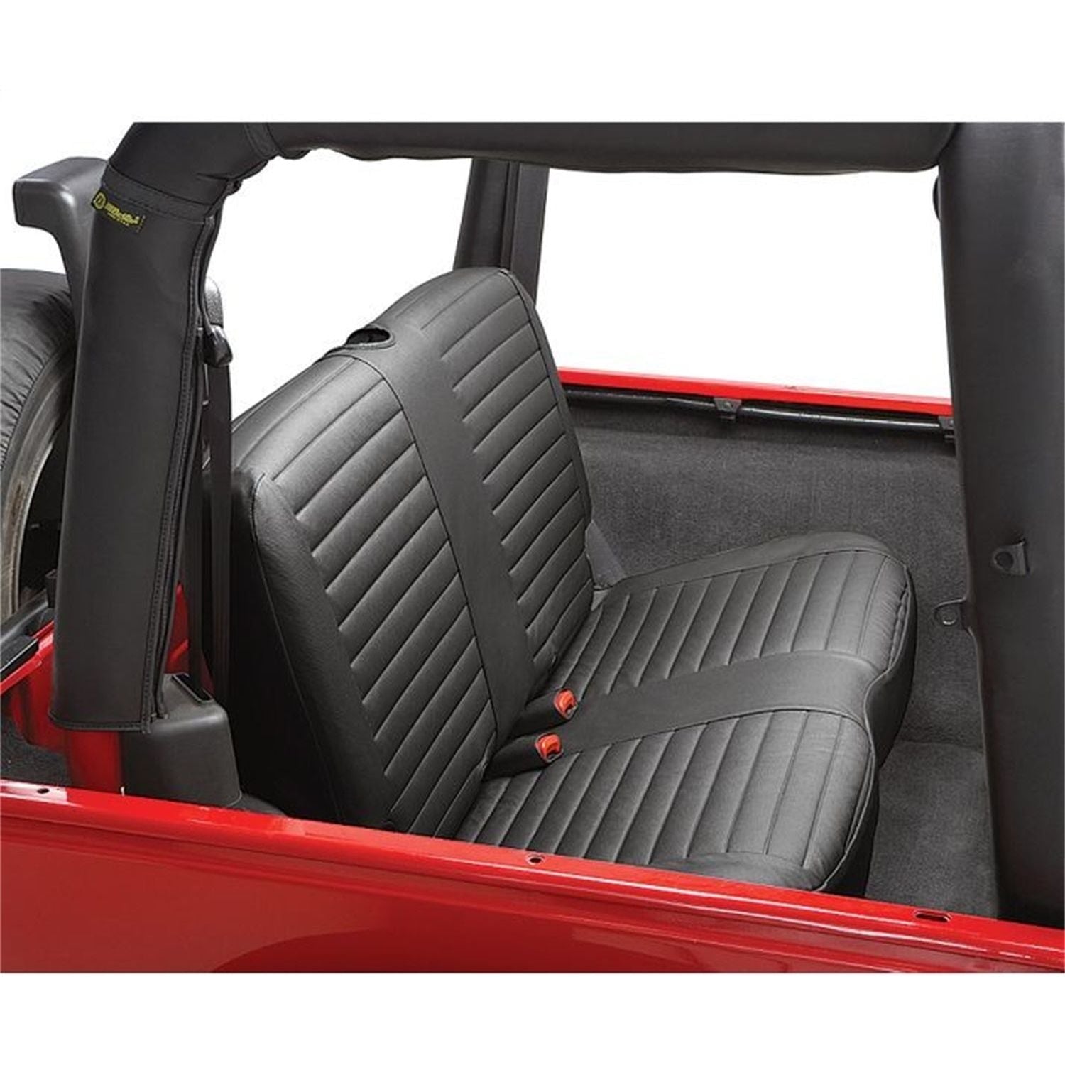 VEHICLE FITMENT: TJ WRANGLER (1996-2006) I Bestop Seat Covers Black Denim Bench Fits Factory Seats Sold Individually I Put some great looking protection on those new Wrangler factory seats, or make worn seats look new again. Bestop put its best fabric experts to work on making these the best-fitting, best-looking, most durable seat covers we've ever offered. Installation requires no drilling or cutting.