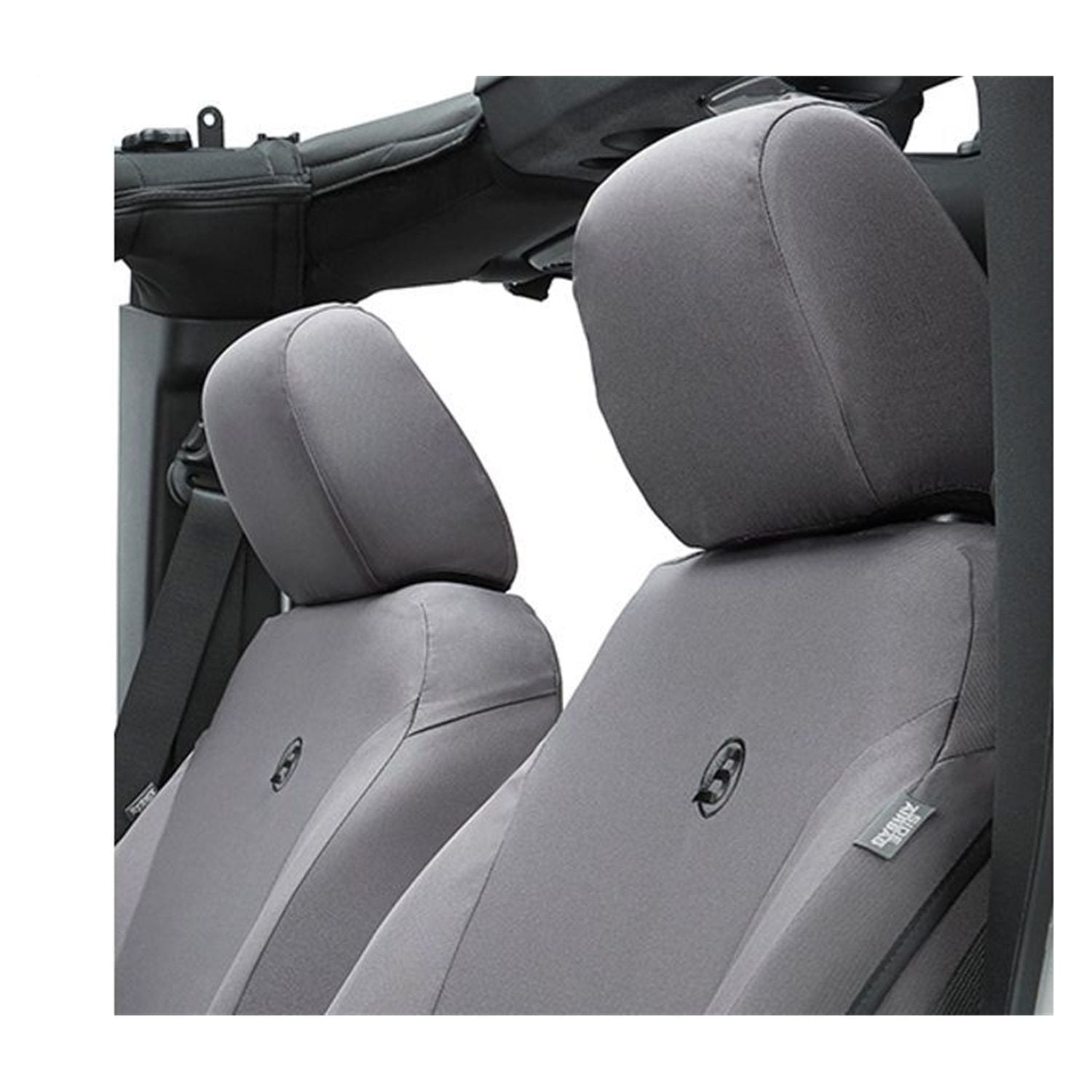 VEHICLE FITMENT: JK (2DR) 2007-2018;JK (4DR) 2007-2018 I Bestop Seat Covers Charcoal/Gray Fit Factory Original Seats I Put some great looking protection on those new Wrangler factory seats, or make worn seats look new again. Bestop put its best fabric experts to work on making these the best-fitting, best-looking, most durable seat covers we've ever offered. Installation requires no drilling or cutting. Available in 3 colors: Black, Tan and Charcoal.