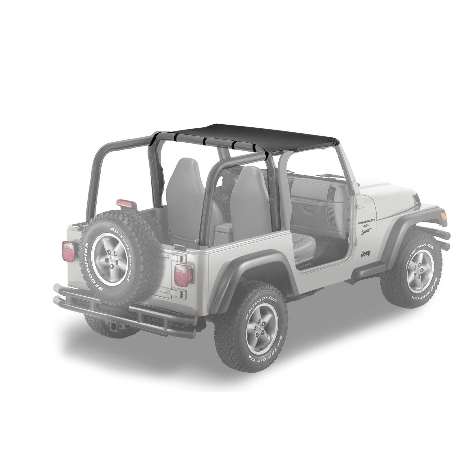 VEHICLE FITMENT: TJ WRANGLER (1996-2006) I Bestop Strapless Standard Targa Style BikiniTop Black Denim Color-Matched Requires Installation Of PN[51210] Drill-In I Bikini Tops are the perfect companion to top-off, doors-off open air rides on the trails or just around town. This Bikini top style provides shade over the front seats for you, a co-driver or Fido.