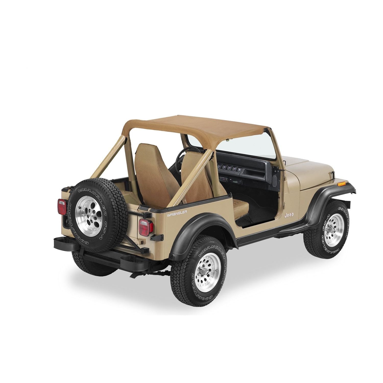 VEHICLE FITMENT: YJ 1987-1995 I Bestop Strapless Standard Targa Style BikiniTop Spice Color-Matched Requires Installation Of PN[51209] I Bikini Tops are the perfect companion to top-off, doors-off open air rides on the trails or just around town. This Bikini top style provides shade over the front seats for you, a co-driver or Fido.