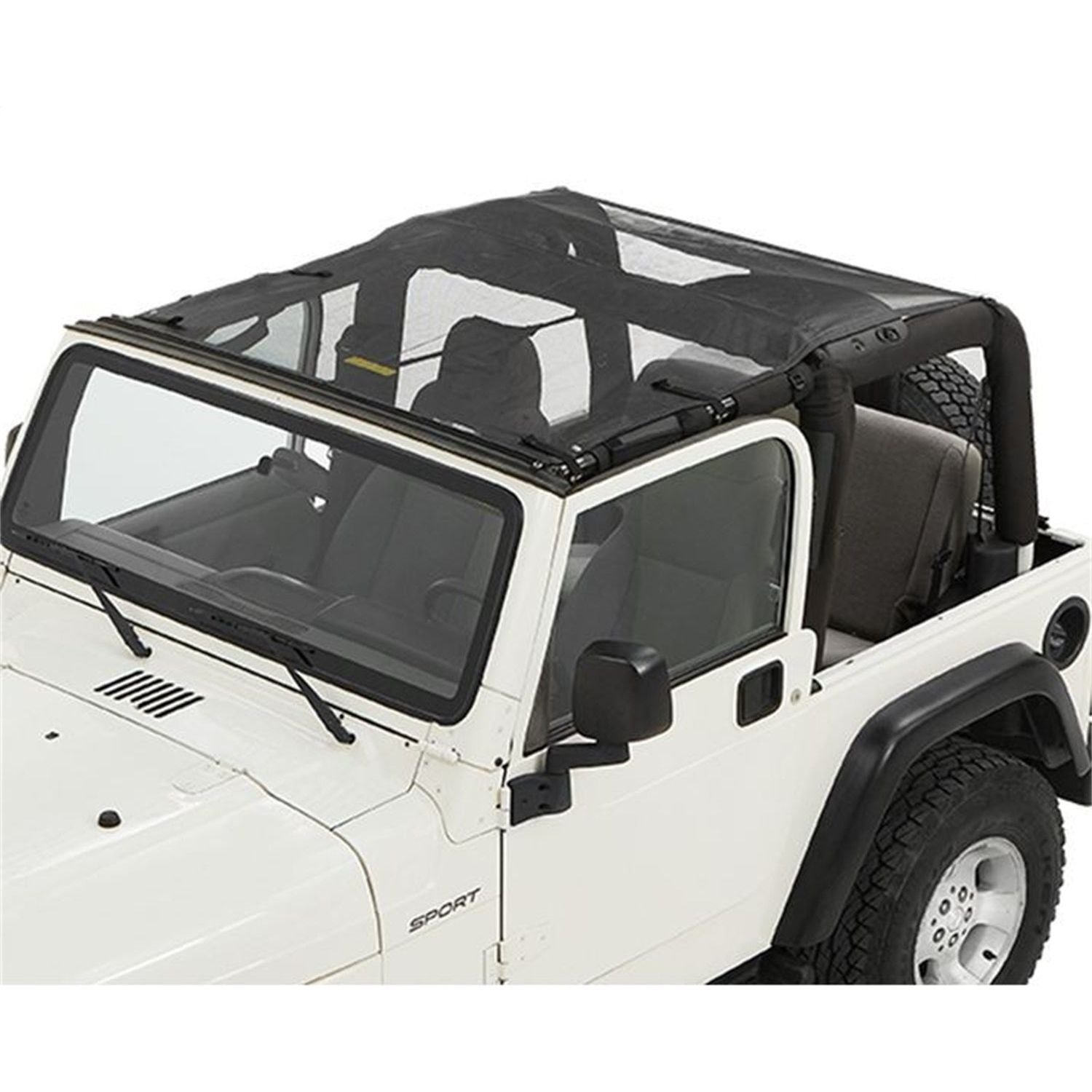 VEHICLE FITMENT: TJ WRANGLER (1996-2006) I Bestop Sun Extended Safari Style BikiniTop Mesh I Bikini Tops are great, but if you want to put your soft top back on, the Bikini Top has to come off as well as the windshield channel. Sun Bikini eliminates all that because it doesn't interfere with your regular soft or hard top and doesn't require a separate, extra-cost windshield channel. It's like an interior sun shade you never have to remove, top up or top down. It offers filtered sunlight or even complete shade with the least amount of effort. Sun Bikinis strap into factory windshield header loops and center sport bar with J-Hook attachment to the upper door bars. Installation or removal is fast and easy. And the money saved in not needing a separate windshield channel can be put toward other Bestop accessories.