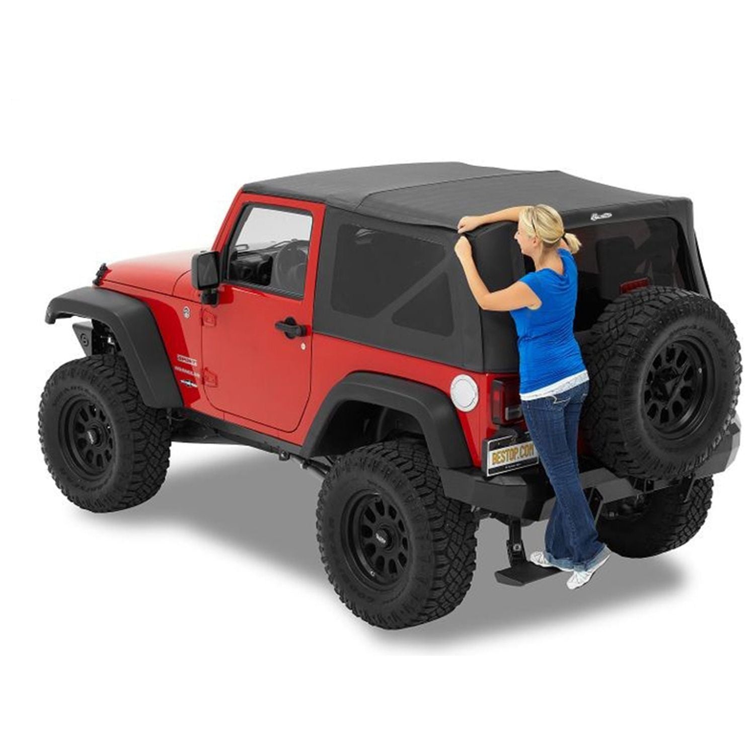 VEHICLE FITMENT: JK (2DR) 2007-2018 I Bestop Supertop Squareback Soft Top Black Diamond No Doors Included Tinted Side/Rear Windows I The original Supertop Classic set the standard for replacement convertible Jeep soft tops, but Bestop wanted to make it even better. So we added our exclusive Sunrider flip-back panel, Top Arch bars and factory-style Door Surrounds to create a new generation - the Supertop. Ideal for those Wrangler owners that currently don't have a soft top, this is the solution to getting the most out of your Wrangler on the trail, or just around town.