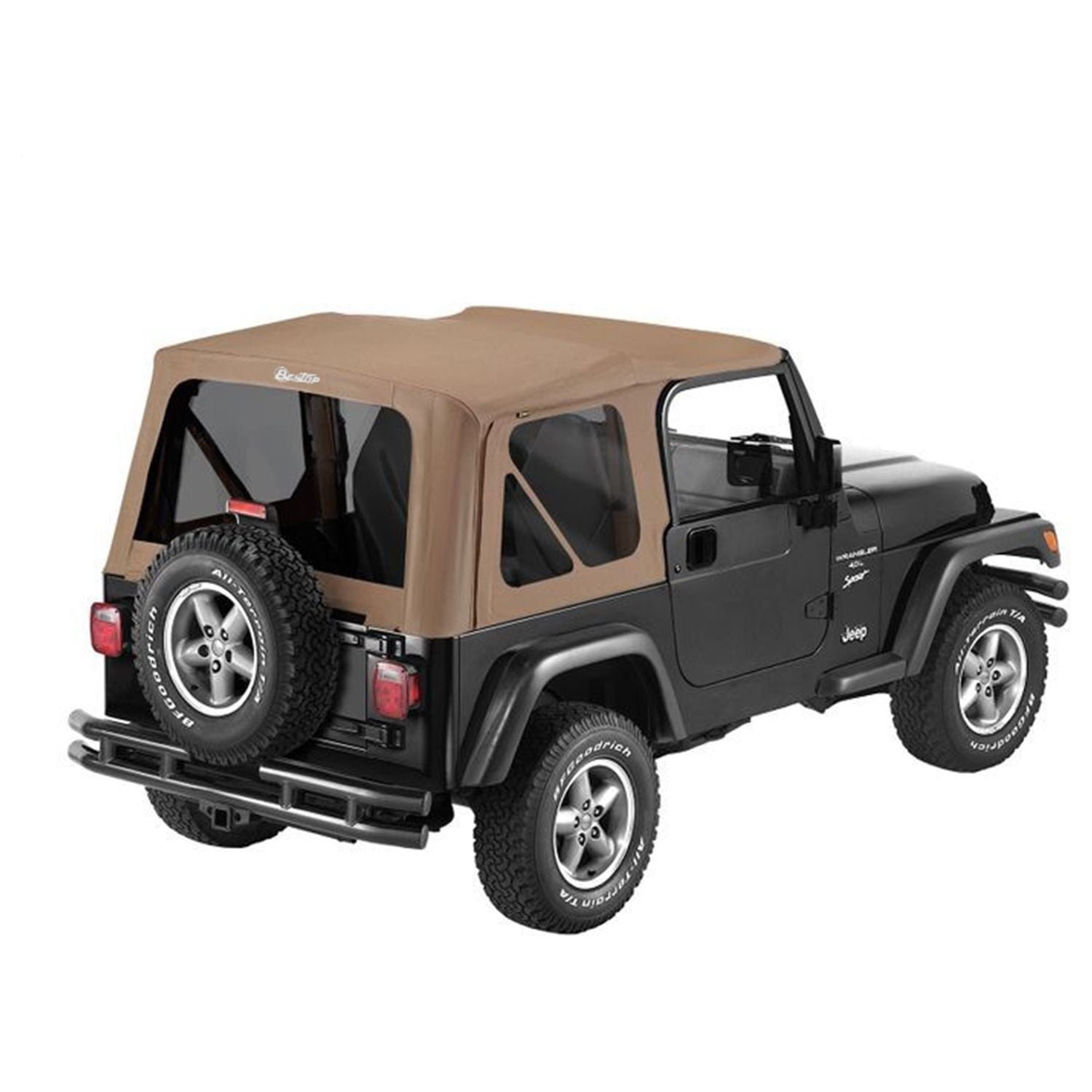 VEHICLE FITMENT: TJ WRANGLER (1996-2006) I Bestop Supertop Squareback Soft Top Spice Incl. Tinted Side/Rear Windows No Doors Included I The original Supertop Classic set the standard for replacement convertible Jeep soft tops, but Bestop wanted to make it even better. So we added our exclusive Sunrider flip-back panel, Top Arch bars and factory-style Door Surrounds to create a new generation - the Supertop NX. Ideal for those Wrangler owners that currently don't have a soft top, this is the solution to getting the most out of your Wrangler on the trail, or just around town.