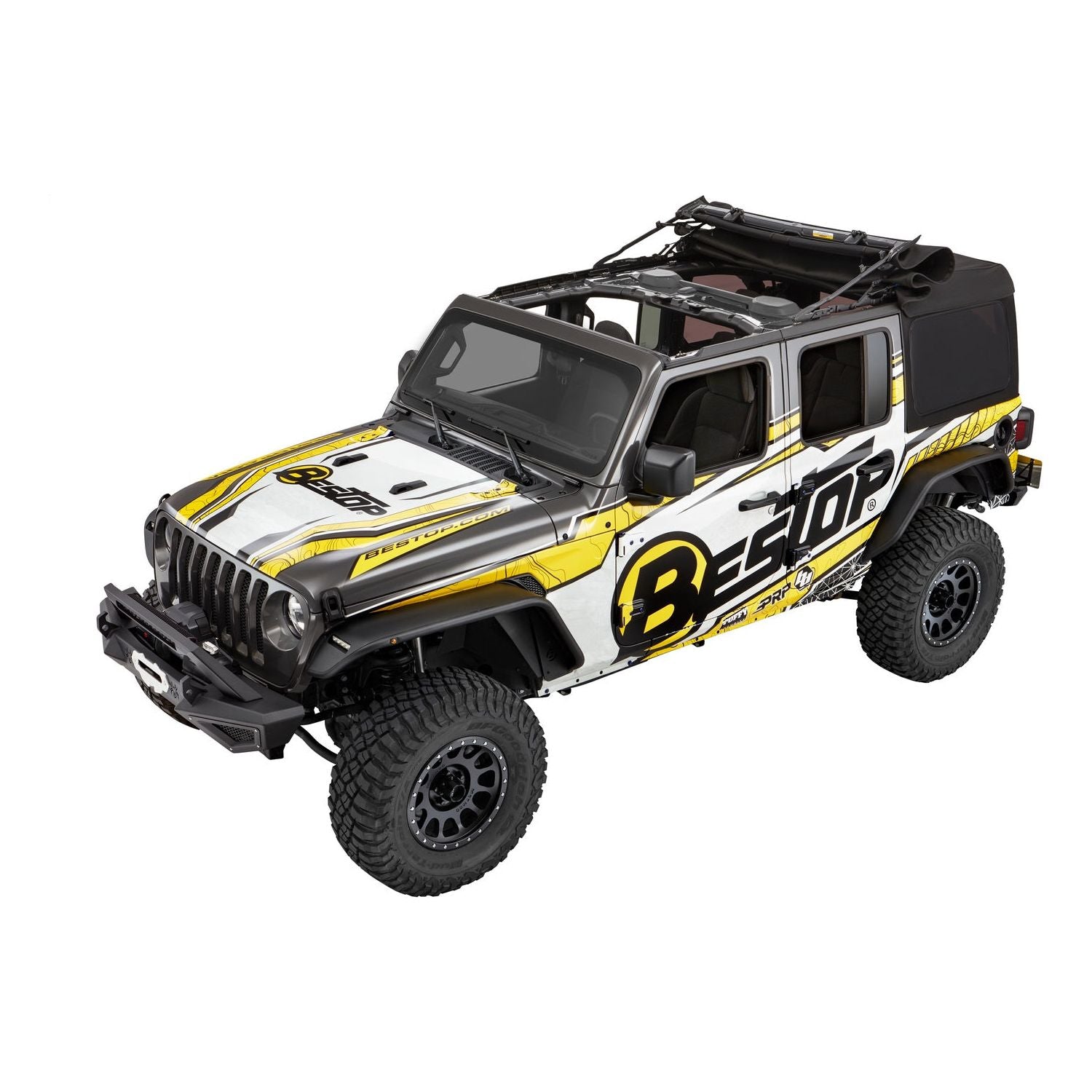 VEHICLE FITMENT: JL (4DR) 2018-PRESENT I Bestop Supertop Ultraâ„¢ Squareback Soft Top Black Twill I The Supertop Ultra is our most advanced soft top for the Jeep Wrangler! The Supertop Ultra can fully retract with our patent-pending guide track system. The enhanced Sunrider sunroof bathes all passengers in open air. Patented lift assist makes it simple for one person to shift the top from fully retracted to Sunrider position.