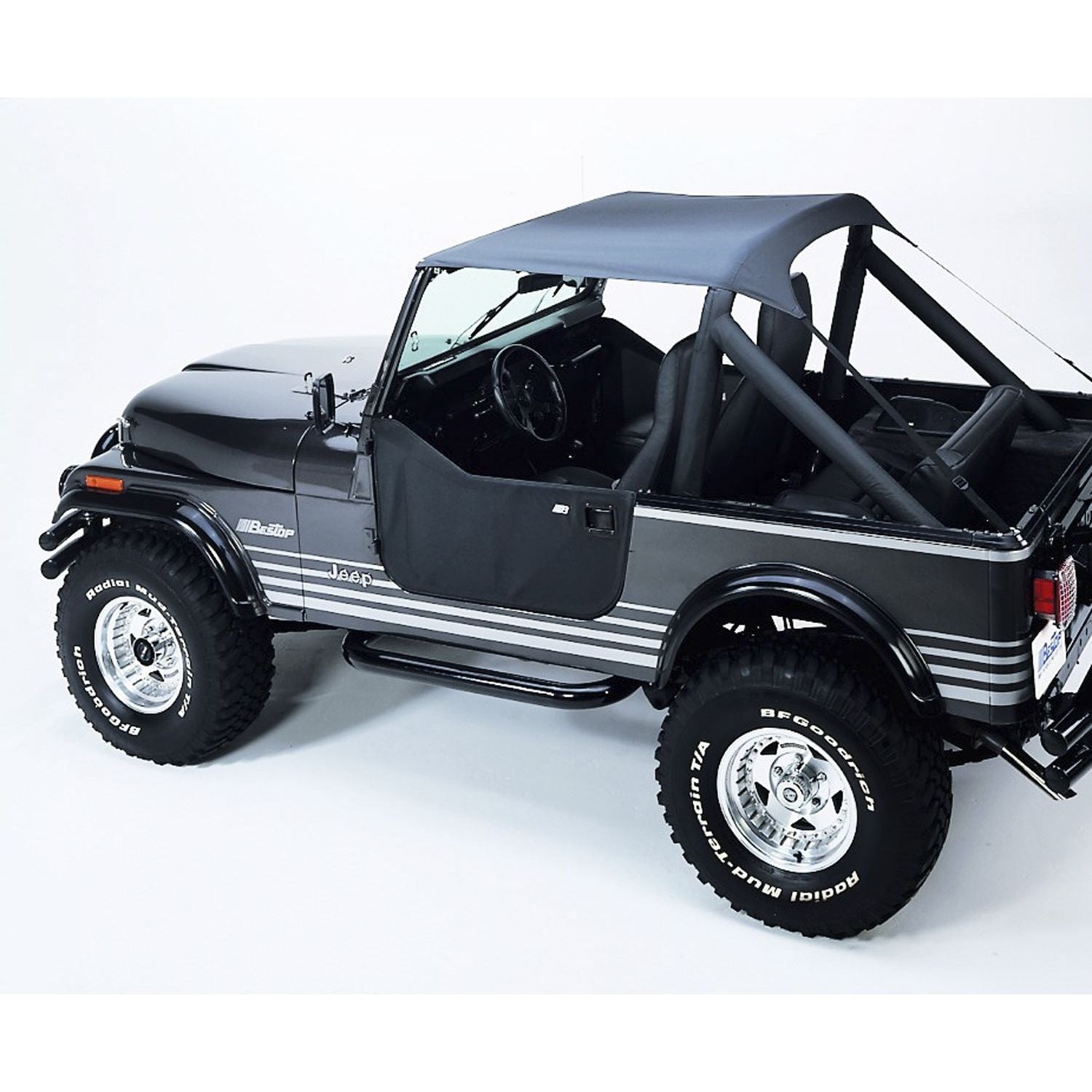 VEHICLE FITMENT: YJ 1987-1995 I Bestop Traditional BikiniTop Charcoal Color-Matched Incl. Straps That Attach To Rear Footman Loops Requires Installation Of PN[51209] I Classic, old-school styling using modern materials. A Traditional Bikini covers the front seats and has two tie-down straps that hook up to footman loops at either rear corner of the body tub. Very retro, and it gets the job done.