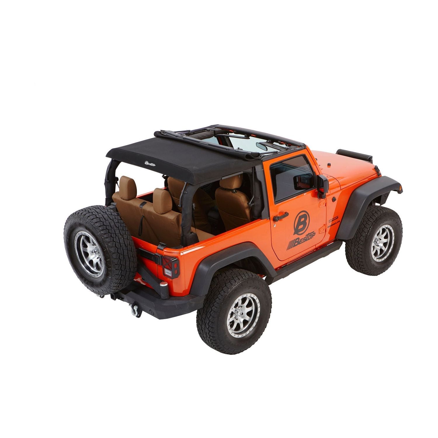 VEHICLE FITMENT: JK (2DR) 2007-2018 I Bestop Trektop GlideSlantback Soft Top Black Diamond 2 Piece I The Trektop Glide is a state-of-the-art soft-top with the superior Bestop fastback styling. The innovative folding frame design lets the Trektop Glide function like a convertible top, simply slide out the zipper-less window panels and fold the top behind the rear seat for a full open-air ride.For full coverage, the Trektop Glide is fast and simple to close.