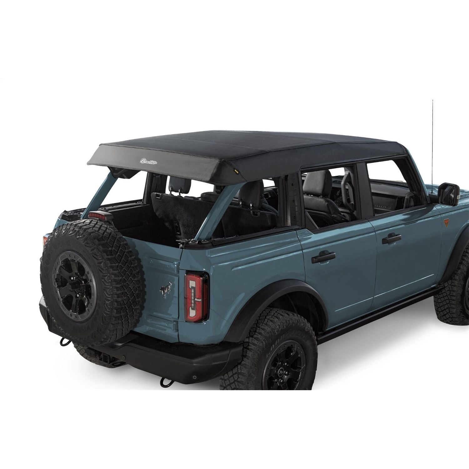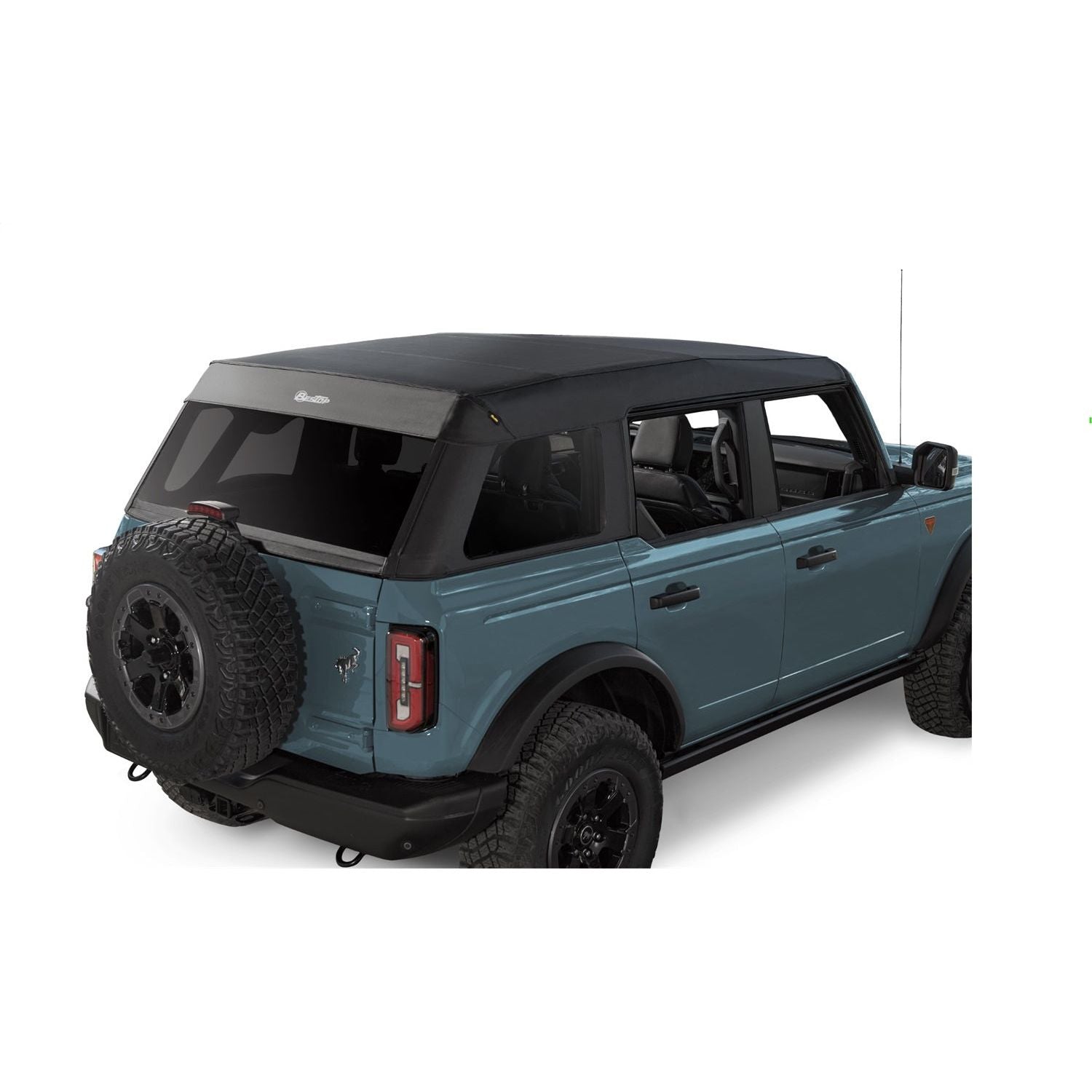 VEHICLE FITMENT: FORD BRONCO (2021-2024) I Bestop Trektop Slantback Soft Top Black Diamond I The Trektop Soft Top by Bestop - run as fully-enclosed, all-season soft top or enjoy the open air with multiple open top configurations.