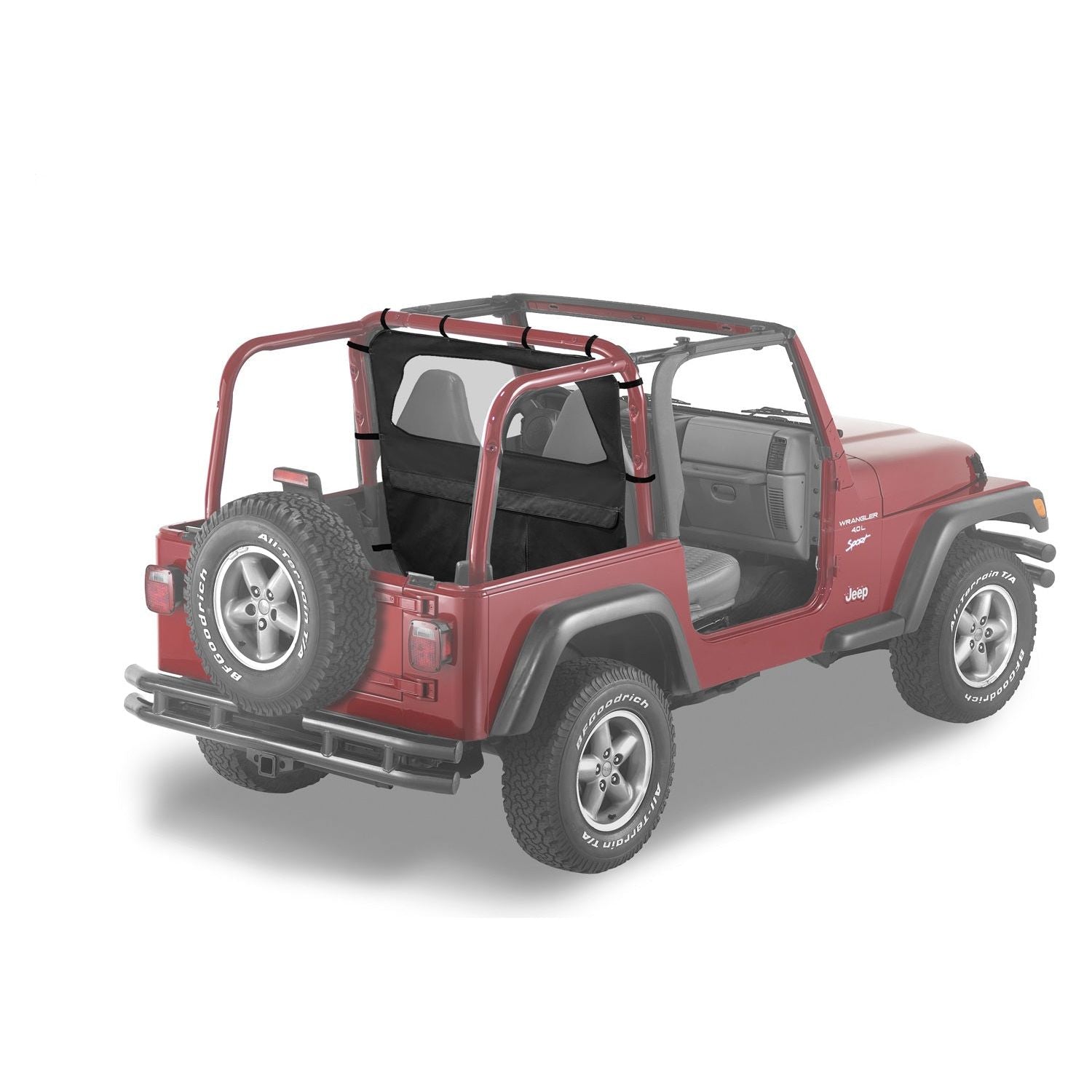 VEHICLE FITMENT: TJ WRANGLER (1996-2006) I Bestop Windjammer Wind Screen Black Denim Standard Style I Windjammers are like a curtain between you and everything nasty blowing in from behind. Helps reduce wind buffeting in the cockpit, along with dust and debris while letting some air to flow through. Combine with a Bikini top and Duster Deck Cover for even more protection.