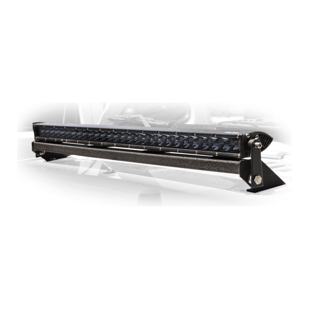 DV8 Offroad Hood Steel Light Bar Mount in Textured Black. Mounts behind the hinge for a low-profile mount. The ability to mount 2 individual lights or light bar from 30" on up. Fits 2007-2018 Jeep Wrangler JK (all models). Easy installation, without modifications needed and uses factory hardware.