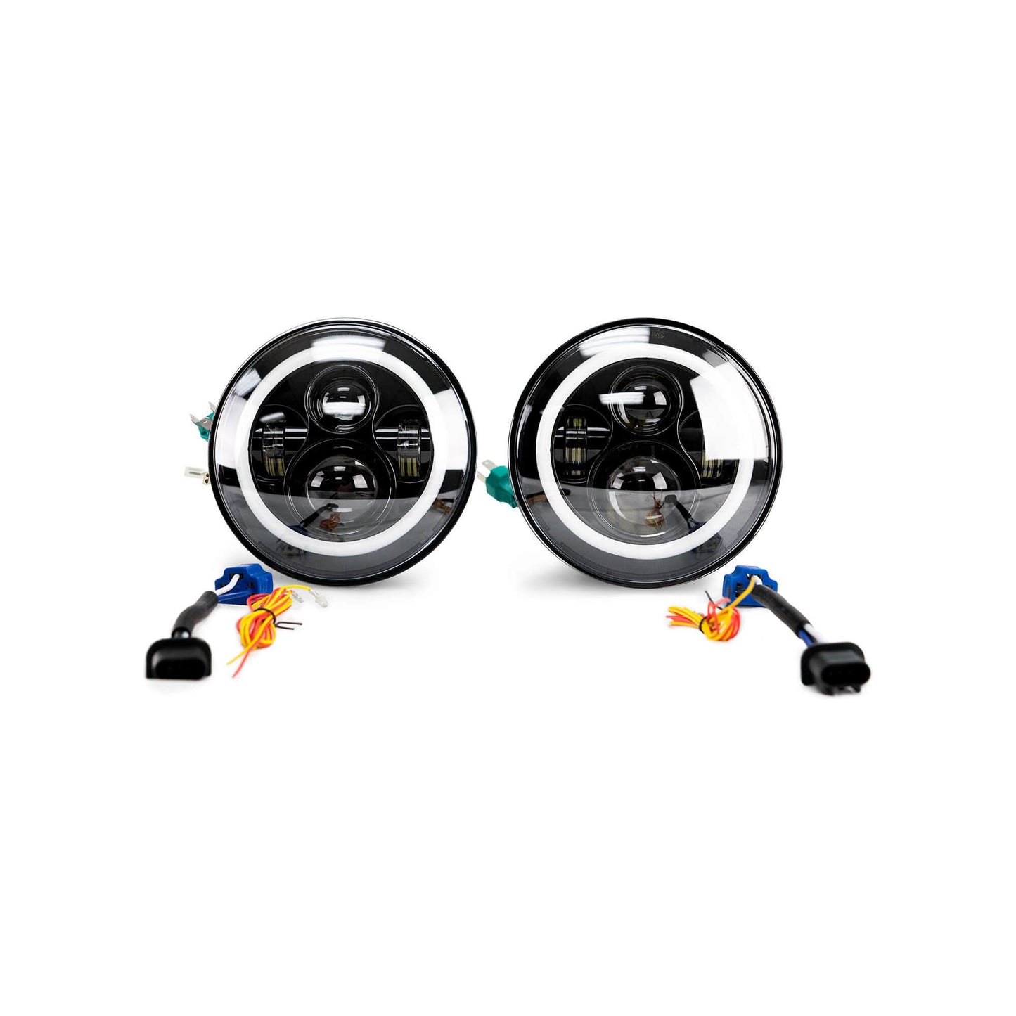 DV8 LED projector headlights are a huge upgrade from stock JK headlights in both brightness and style. They use advanced optical technology to make the most of the LED lights that are housed within them. This "projector" sends a bright and useful pattern toward the front of the Jeep allowing you to see almost twice the distance of a stock headlight. Many also prefer the white light that these headlights give off rather than the amber color from standard headlights. The lights are available with and without a white halo and both styles come with a full harness to allow for simple and easy installation.