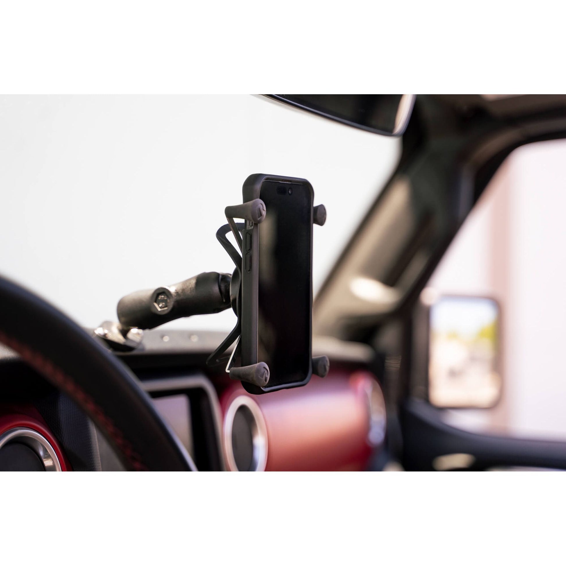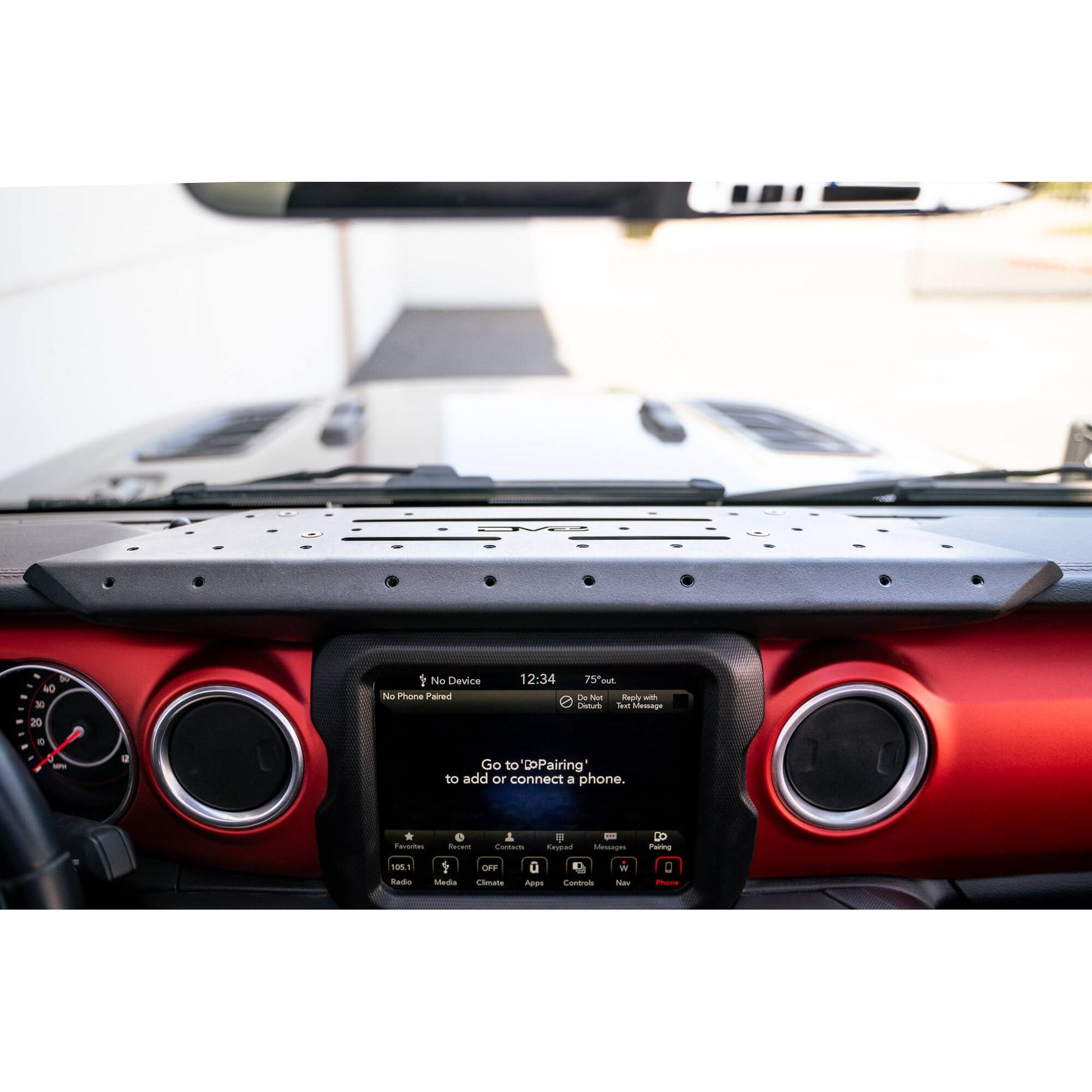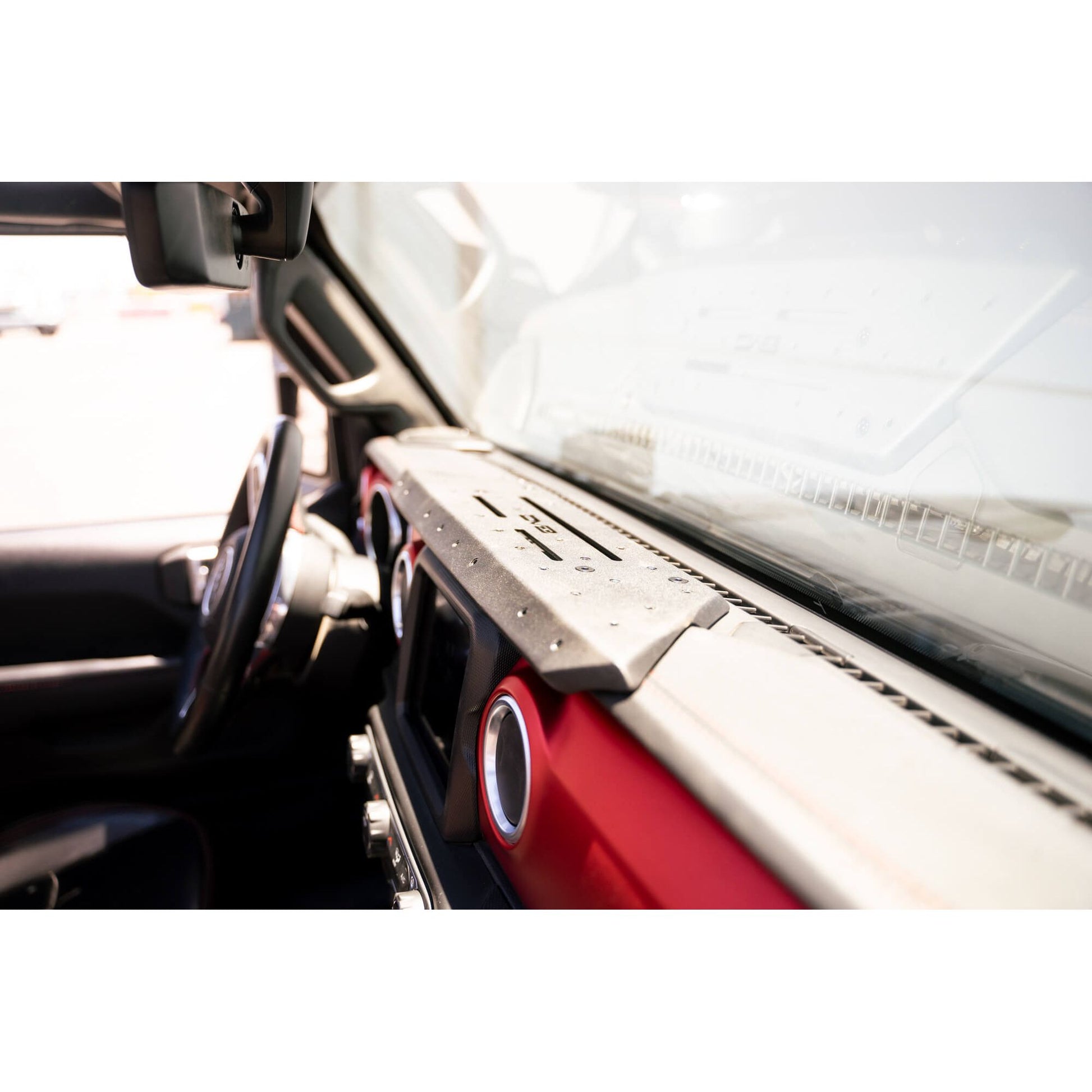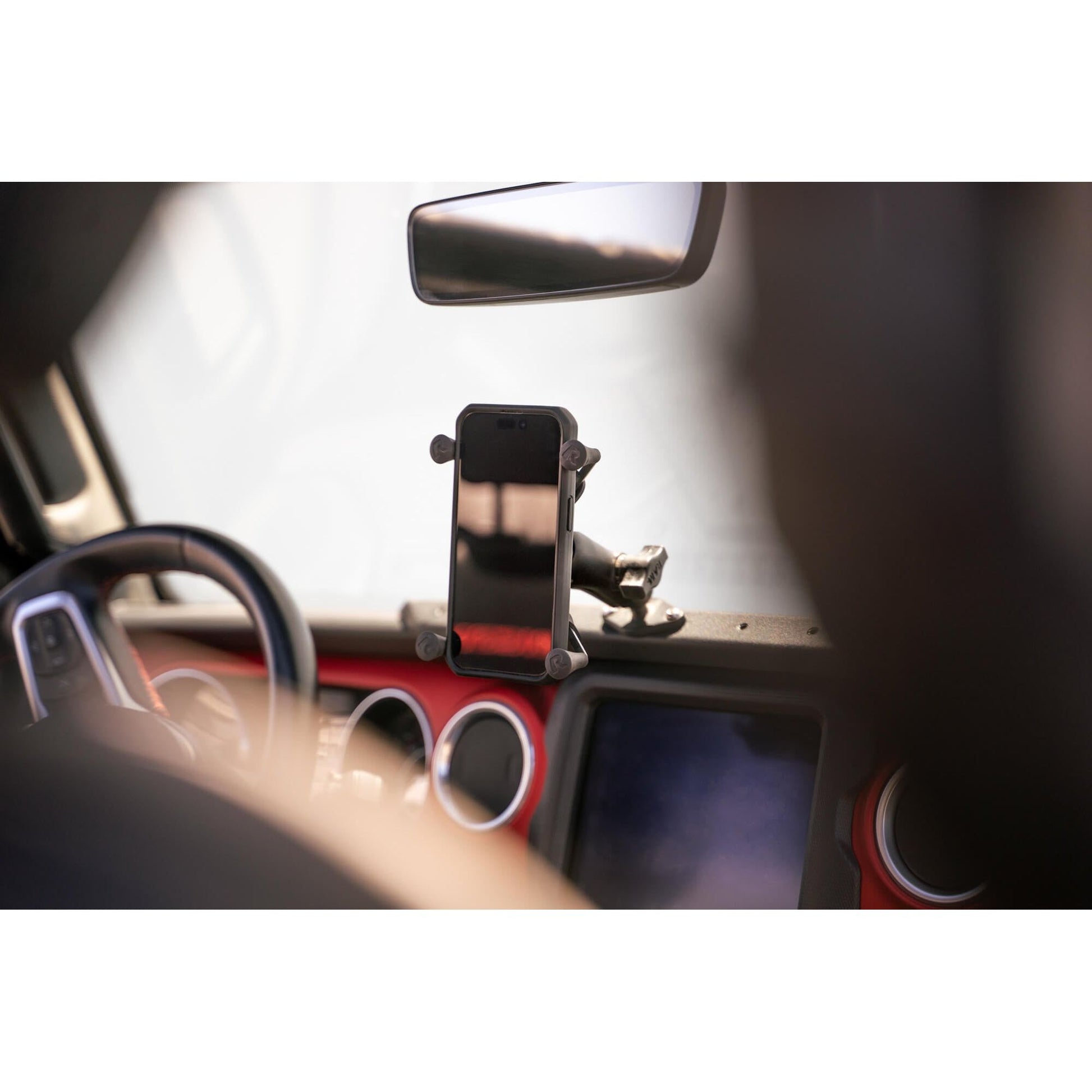 Our Jeep Wrangler & Gladiator Dash Mount is a versatile solution for keeping your essential devices within arm's reach, allowing you to stay connected and in control while on the go. Designed to accommodate multiple devices simultaneously, our dash mount offers the perfect setup for your phone, tablet, GPS, radio/mic, and more. Equipped with M5 x 0.8 Pem Nut mounting points, our dash mount is compatible with a wide range of accessories, including RAM Mounts Diamond Base Holders and other popular brands. Enjoy the freedom to customize your setup and securely attach your preferred devices.