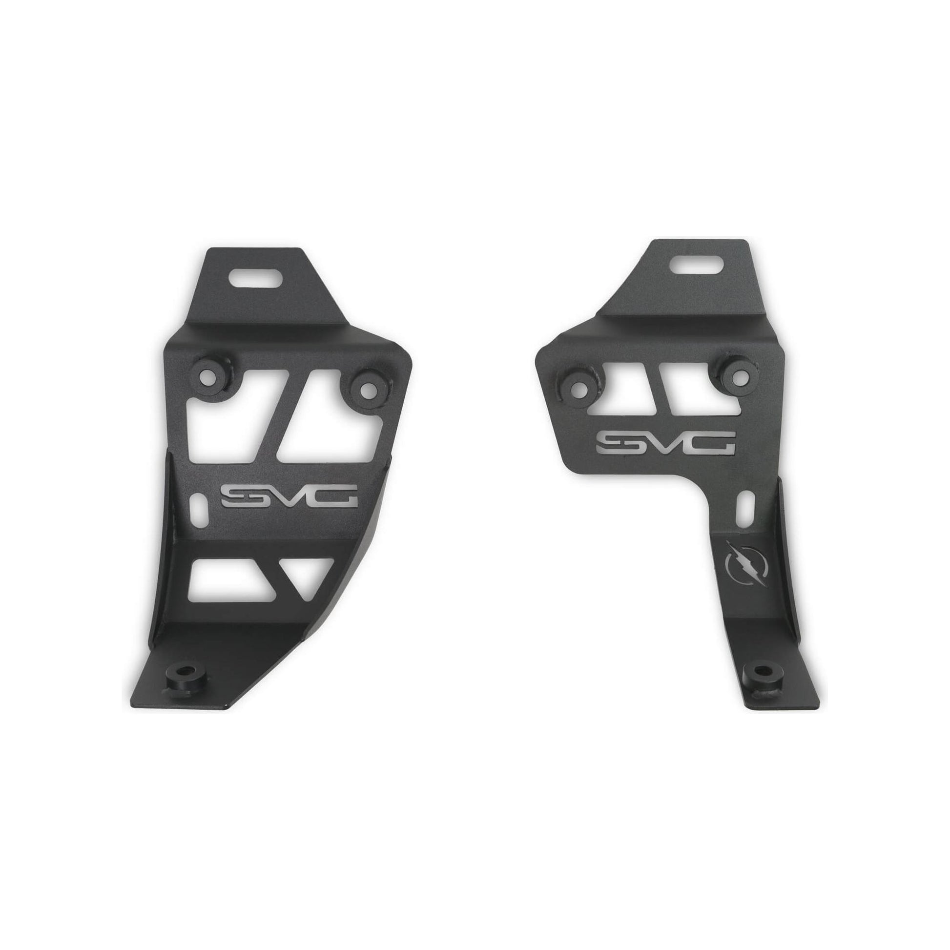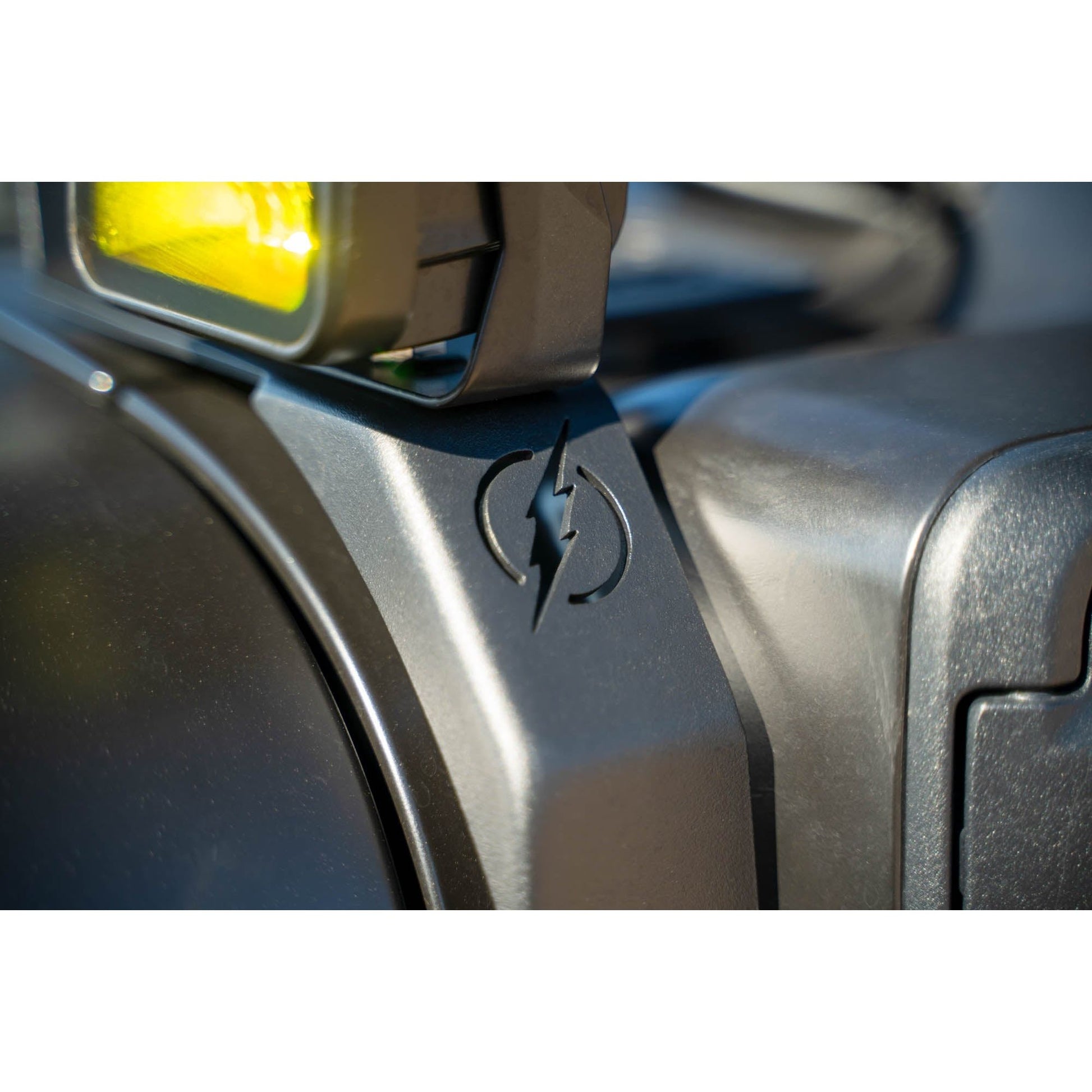 Our Wrangler 4xe Dual Light Pod Mounts install to the base of the A-pillars, and enable you to mount (2) 3-inch light pods on each side of the Jeep. These can be used for multiple lighting configurations. Each of the 2 light mount positions can be pointed forward or to the side for versatile lighting. With the ability to mount 4 light pods, you can run 2 clear and 2 amber lights, 4 clear pods, 4 amber pods, or whatever configuration that suits your needs.