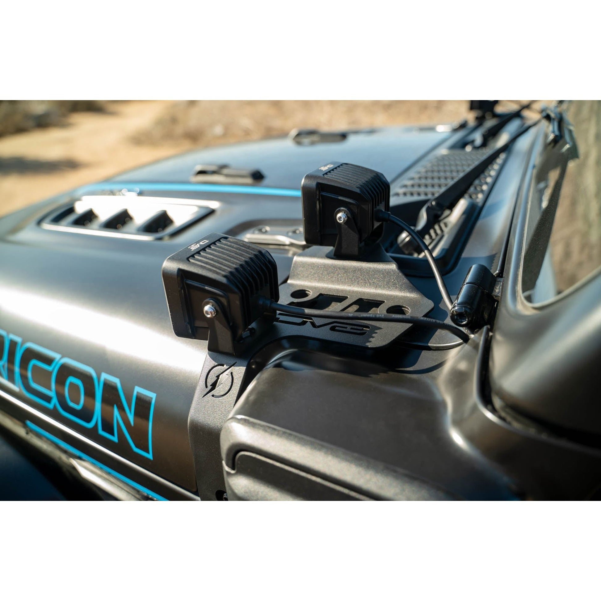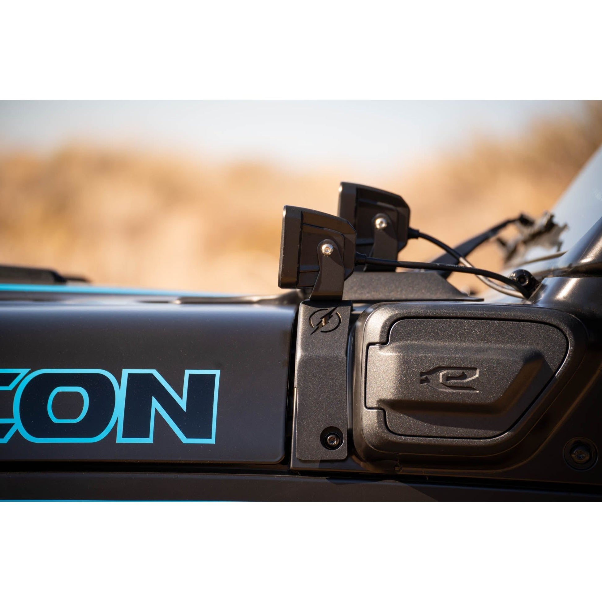Mounts (2) 3” Light Pods at the A-Pillar on Each Side