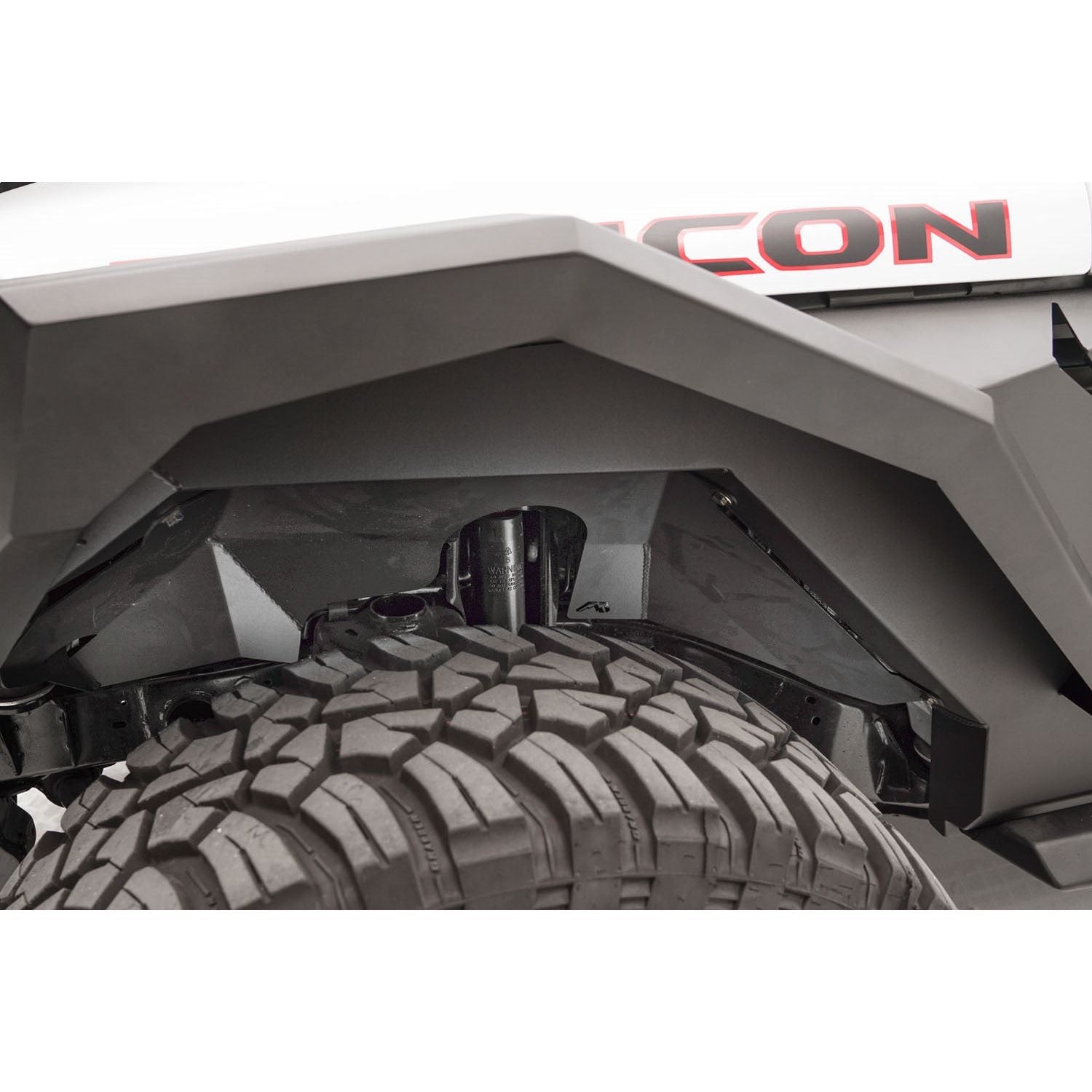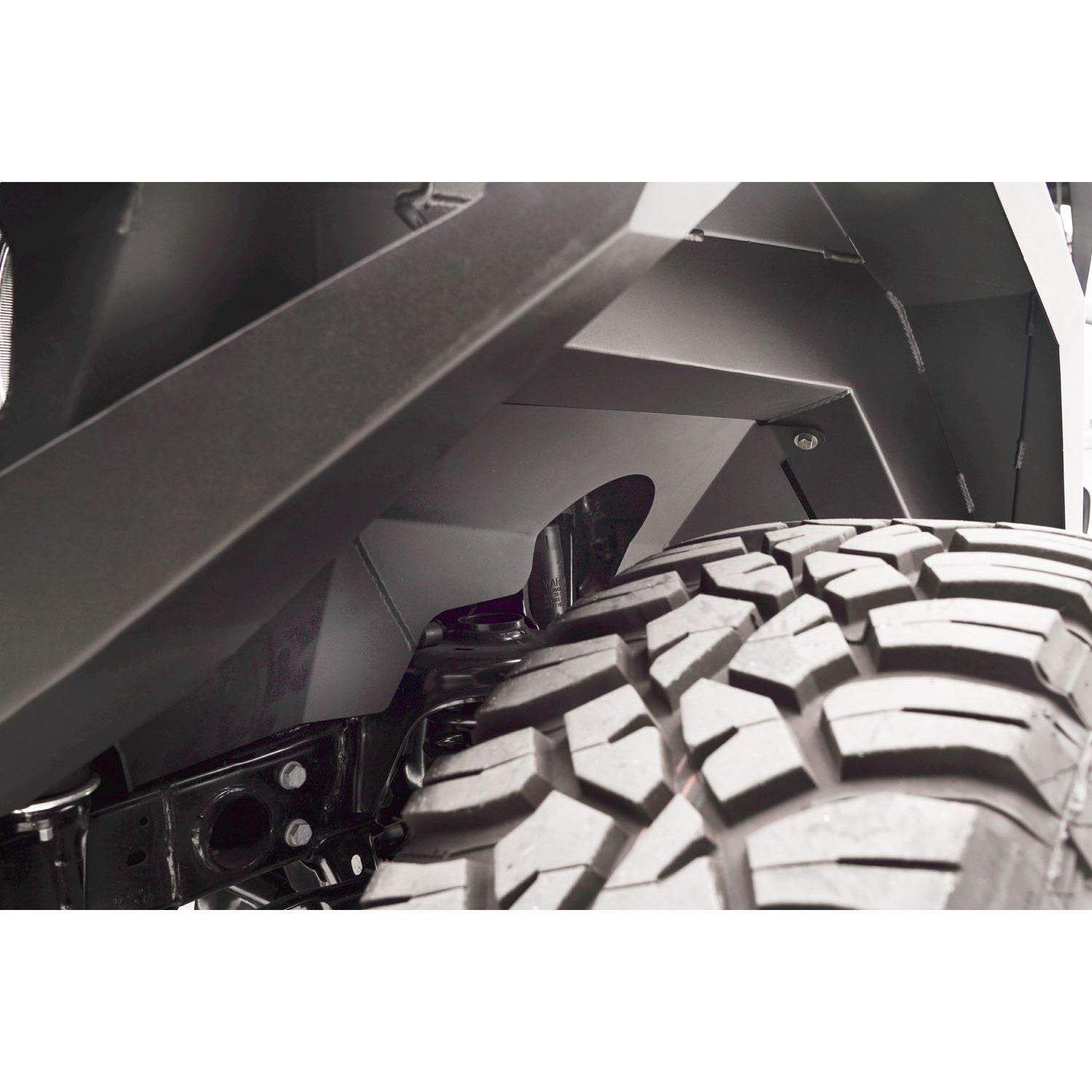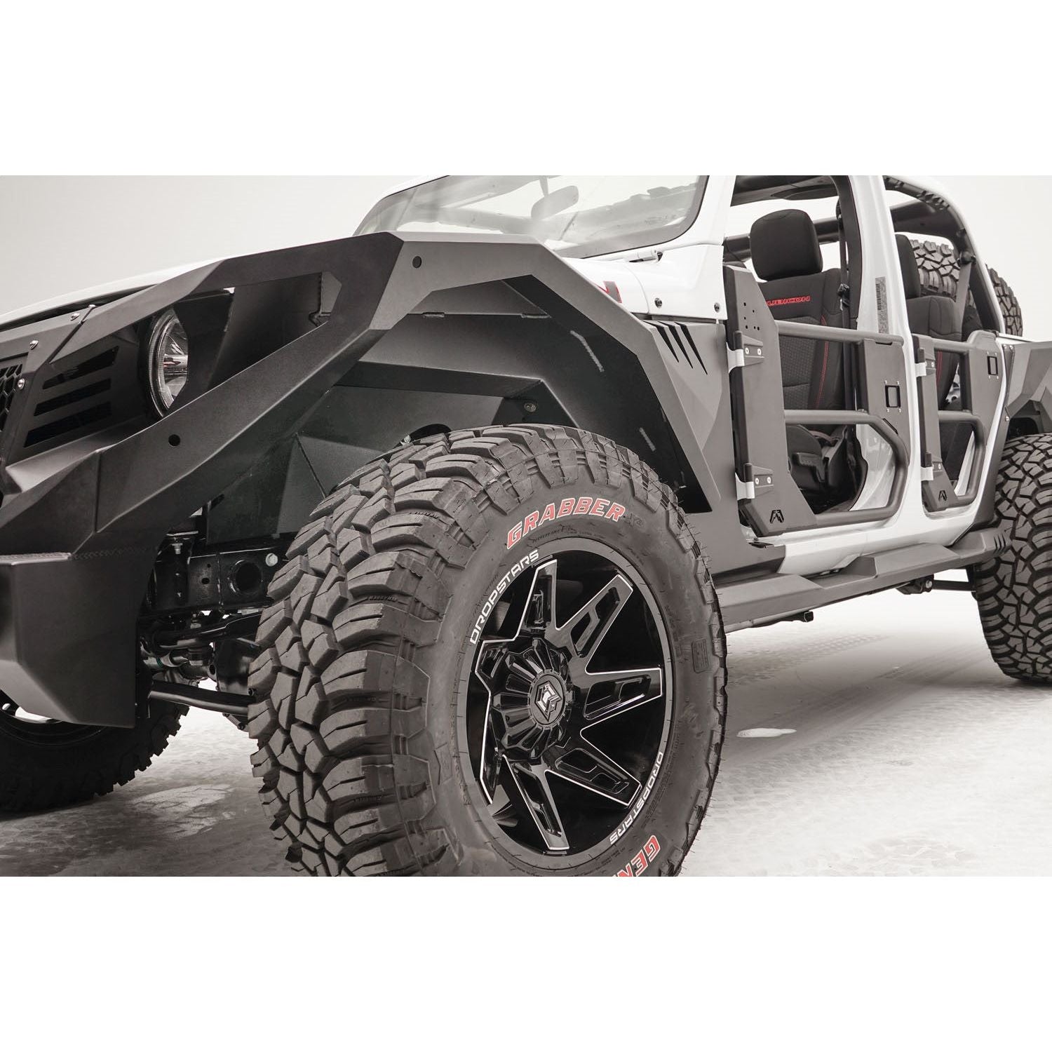 The perfect combination of form and function. The Fab Fours Light Fender System focuses on aggressive styling, ease of installation and incorporating the factory daytime running light. Sold with the base fender and engineered to be the industries best and most stylish JL fender flare. Key features include ease of installation; retains the factory daytime running light; provides greater tire clearance; includes fender base and 11 Gauge Steel Construction. Always Made in the USA!!