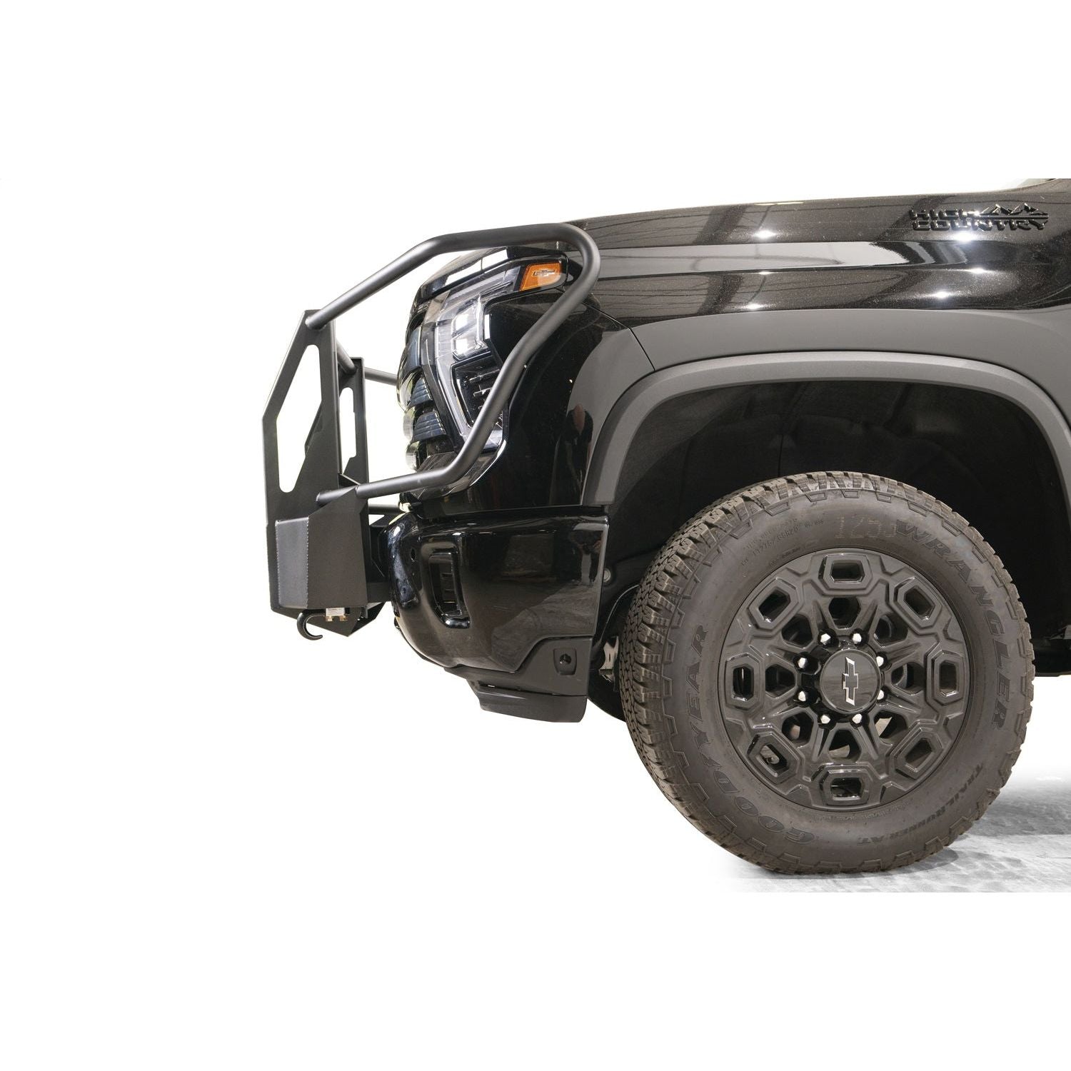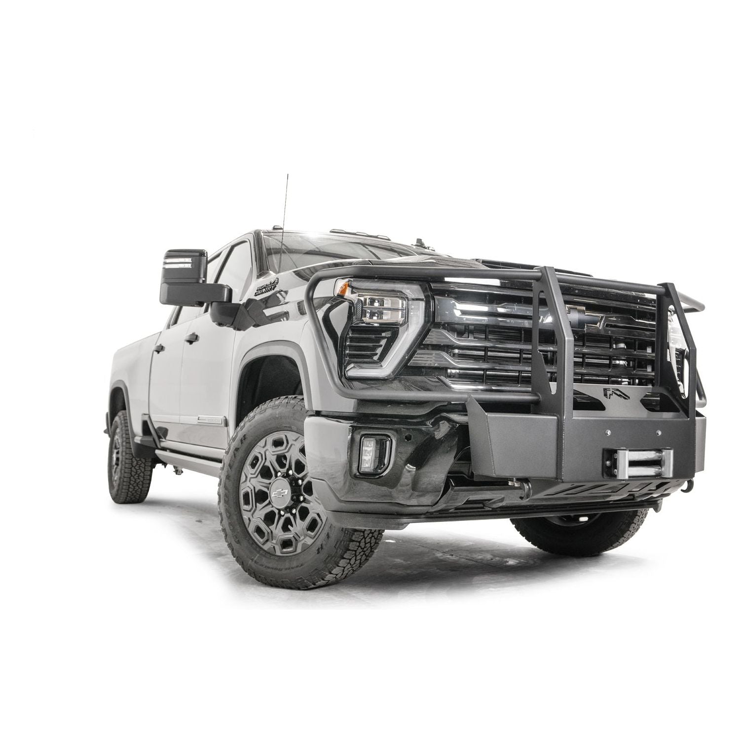 Fab Fours Winch Mount, a one-piece fully welded bumper designed for hardworking truck owners in search of uncompromising strength and functionality. Crafted with precision in the USA, this remarkable bumper combines robust construction with innovative design to tackle tough challenges with ease. Easy to install, slipping through the factory tow hook slots straight to the frame. Available in Full Guard, Pre-runner or No Guard options that accommodates a 16,500 lbs. winch or smaller. Built to withstand the demands of work or off-road adventures, the Fab Fours Winch Mount offers exceptional protection, functionality, and ease of installation.