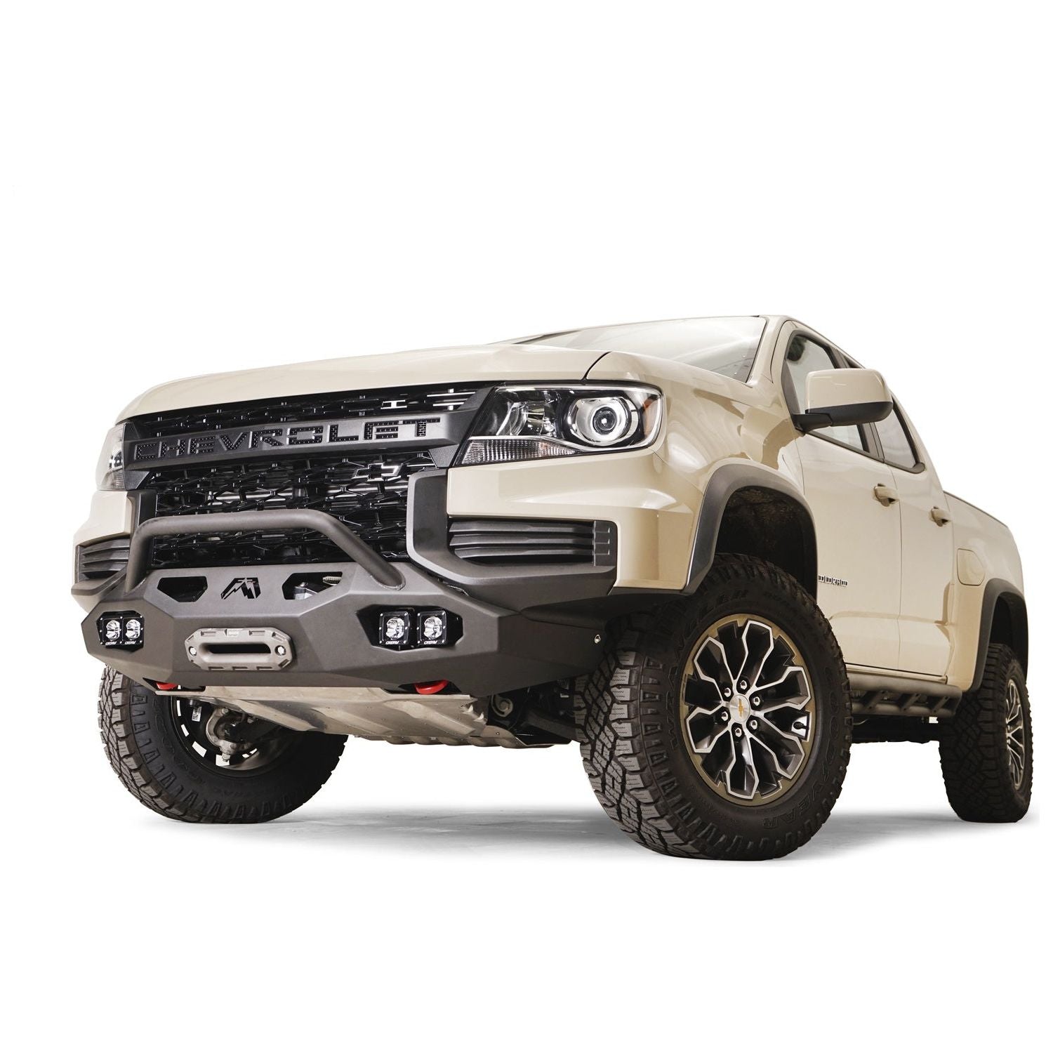 The perfect combination of form and function. The Fab Fours' 2021 Chevy Colorado ZR2 Winch Mount was made for the ultimate adventurous spirit. Key features include: Winch-ready design; retains factory tow hooks, and allows (4) 3x3 LED cube lights. Available in a No Guard or Pre-runner Guard style. Always Made in the USA!