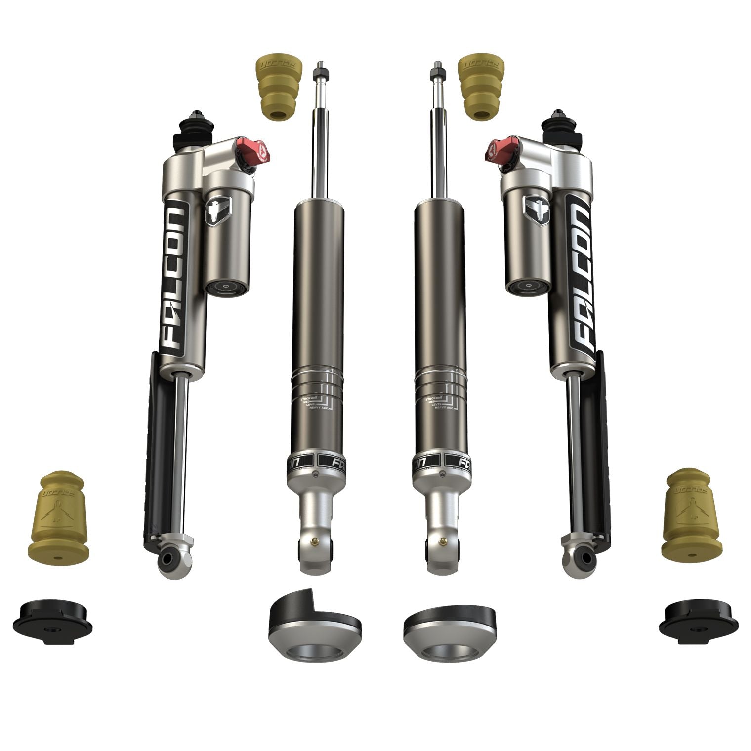 Falcon Shock Leveling Systems feature our front Leveling Shocks, which provide multiple ride heights to level the front end and/or compensate for the additional weight of a winch or other accessories.