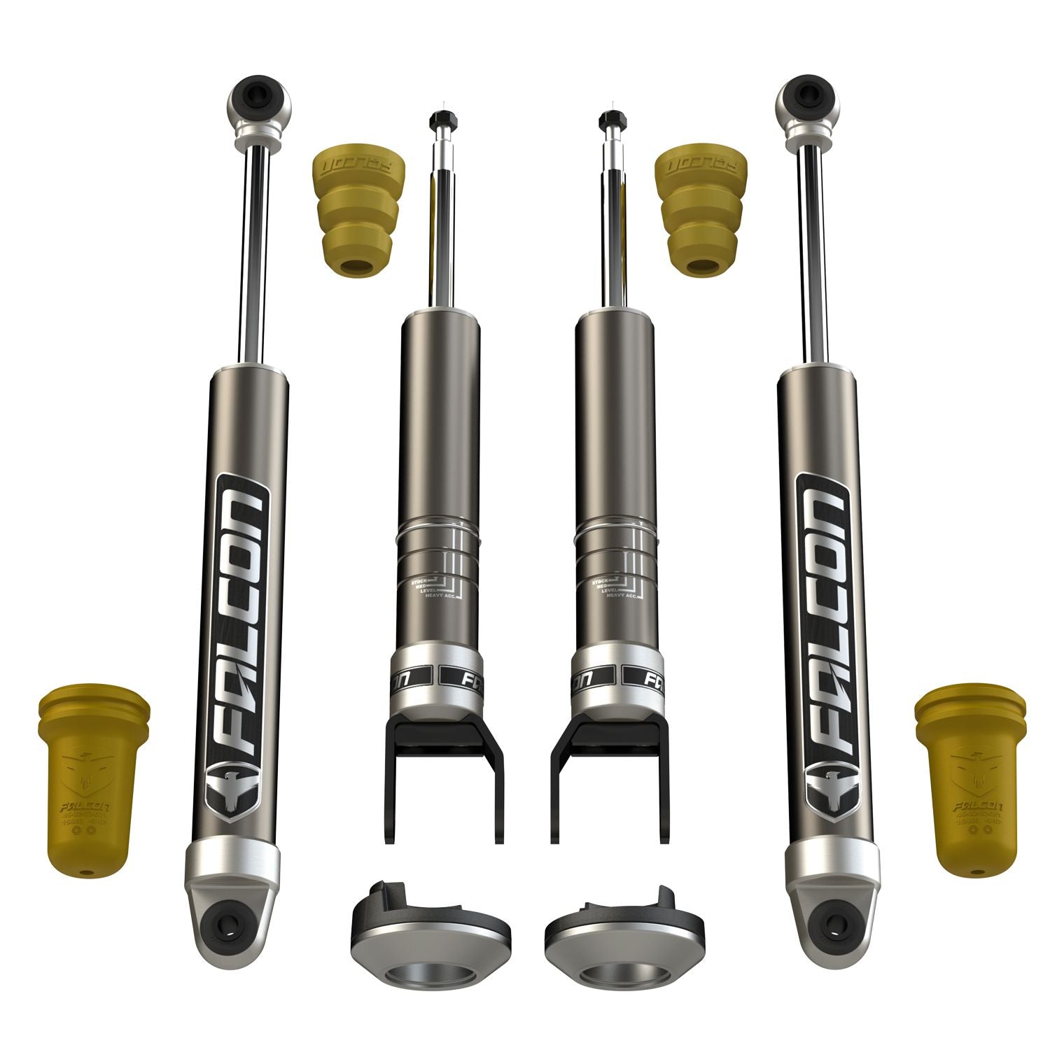 Falcon Performance Shocks improve performance and comfort regardless of the terrain. Sport Shock Systems feature front monotube shocks and rear monotube or piggyback shocks.