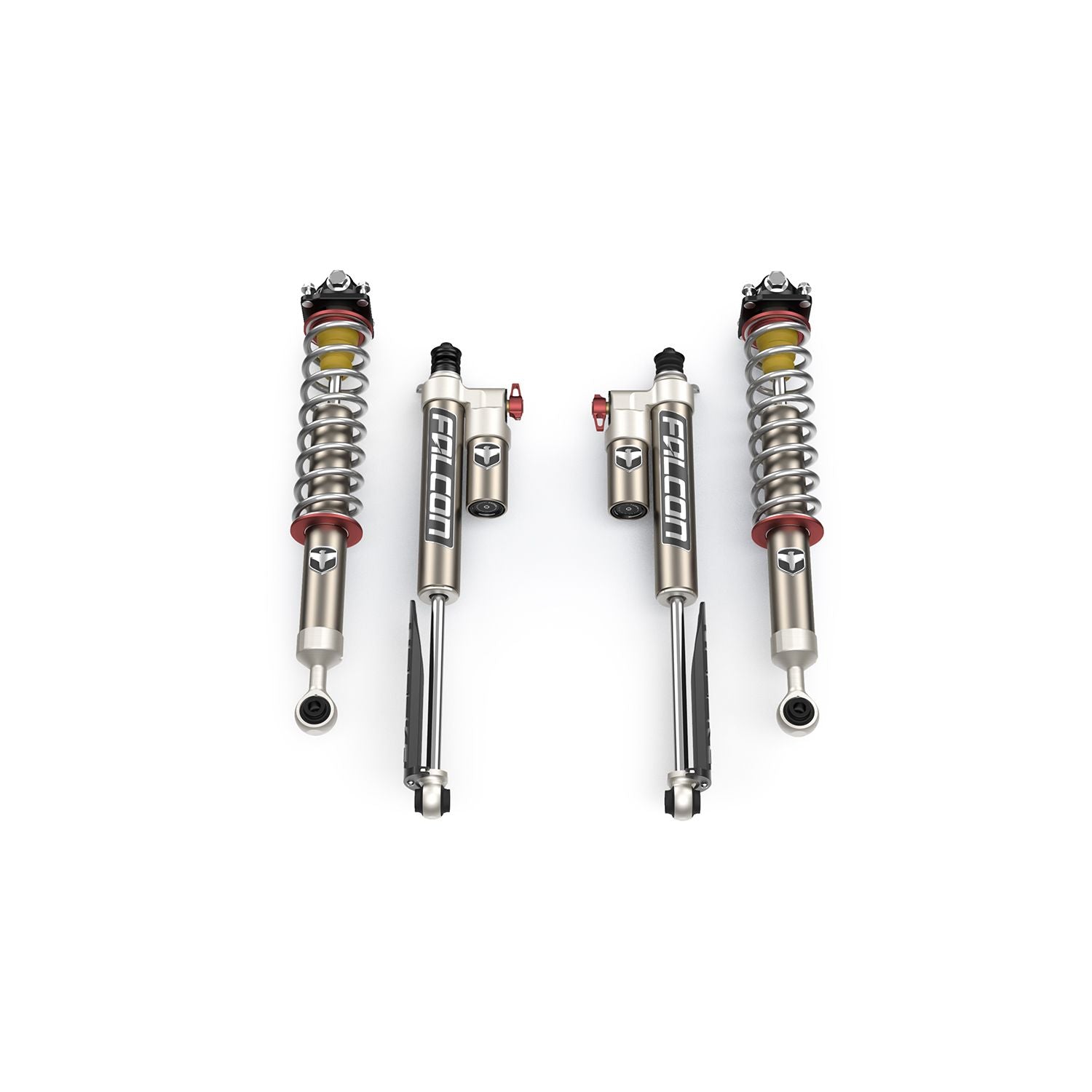 Helping the Tacoma reach its full potential starts with adding 1.2.0 Inch of shock travel. Shock travel is integral to any suspension, and the fully assembled front Coilover shocks that feature vehicle specific springs are designed to level the Tacoma 1.75 Inch and complement the Tacoma-specific shock tuning provided by Falcon shocks.
