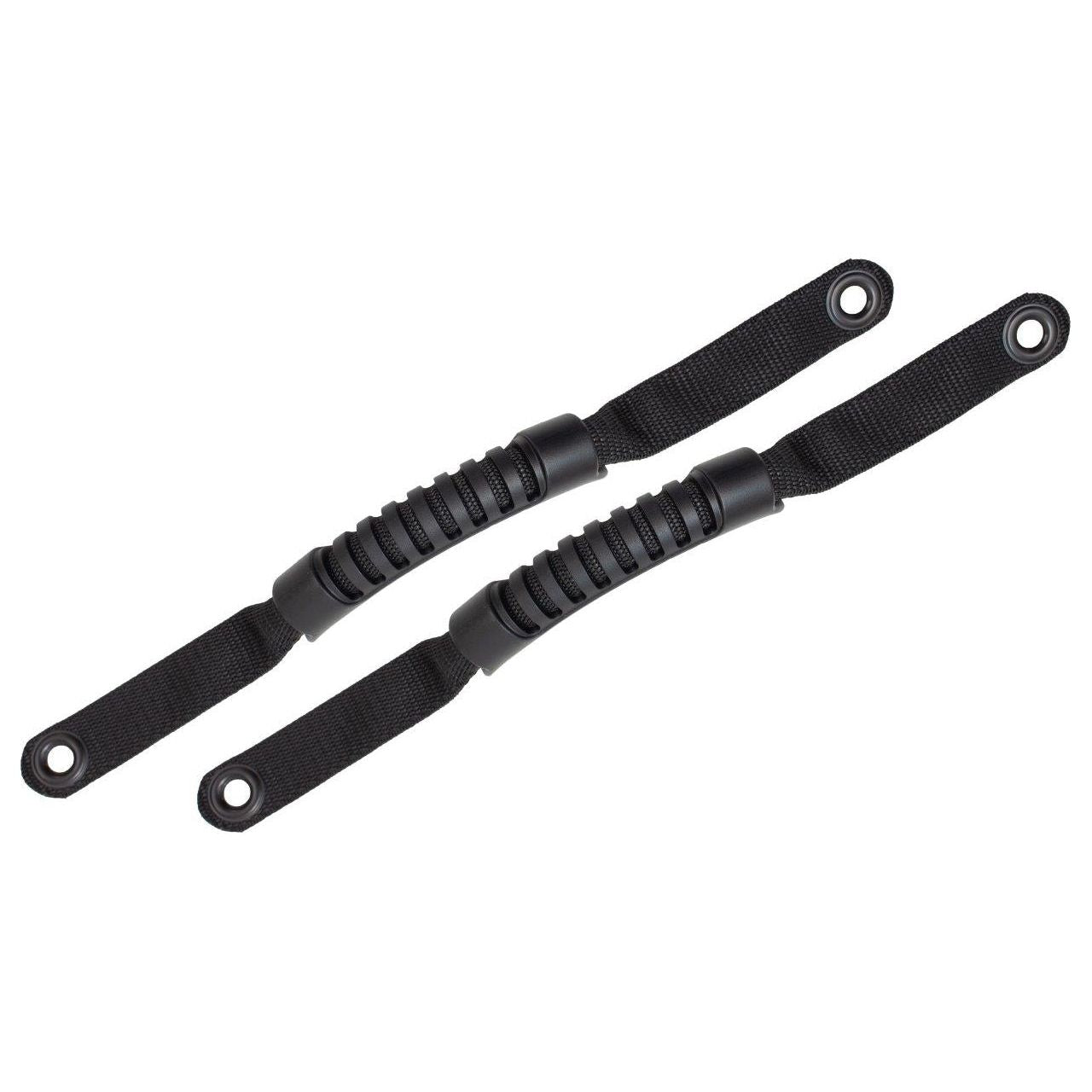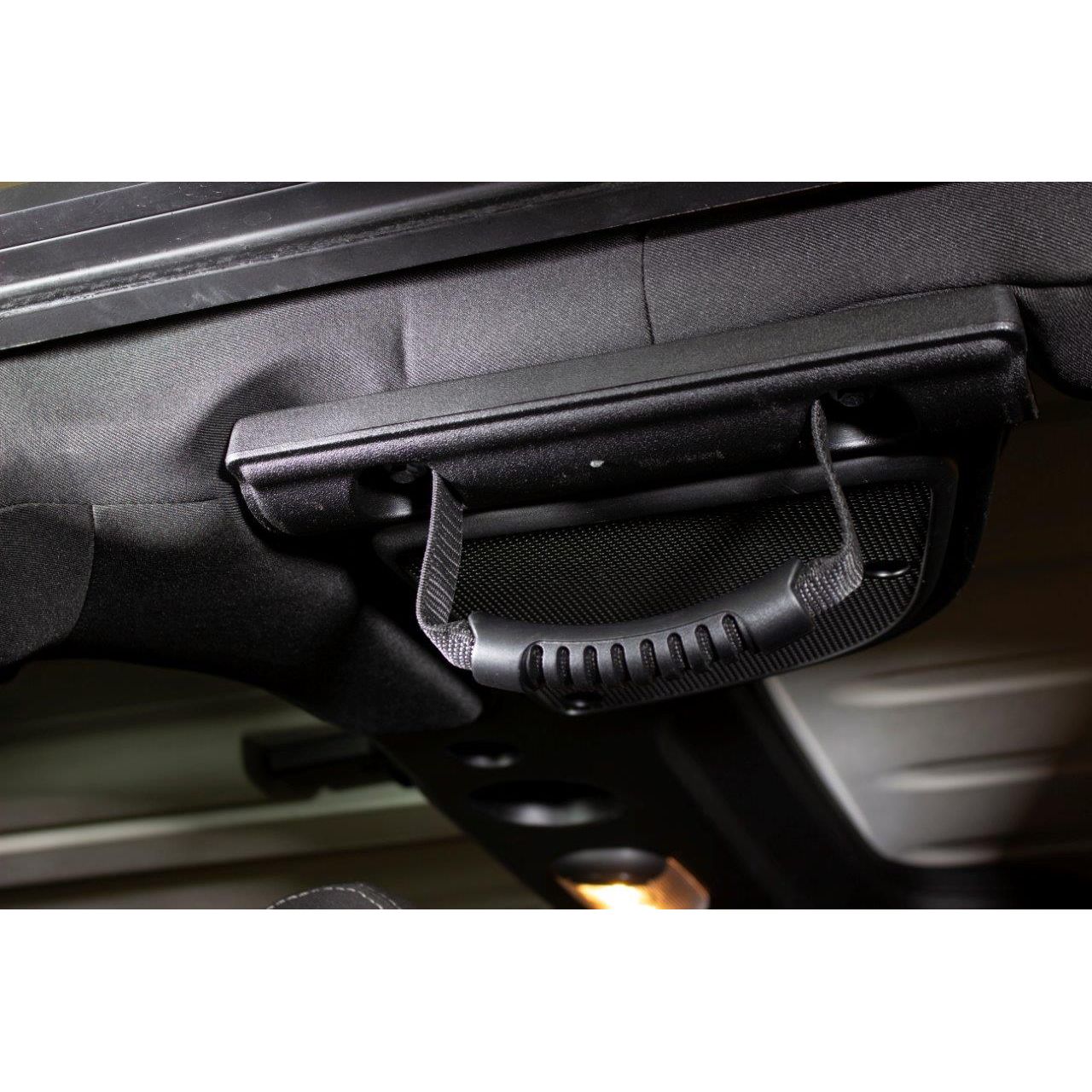 Features: Made of High-Quality Black Nylon Webbing Heavy duty molded rubber handle Made in the USA Fits front A-pillar and Rear Sound Bar Fits 2007 to 2018 JK Wrangler, Rubicon and Unlimited 2 and 4-Door Models Sold as a pair