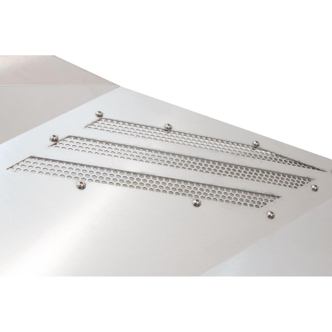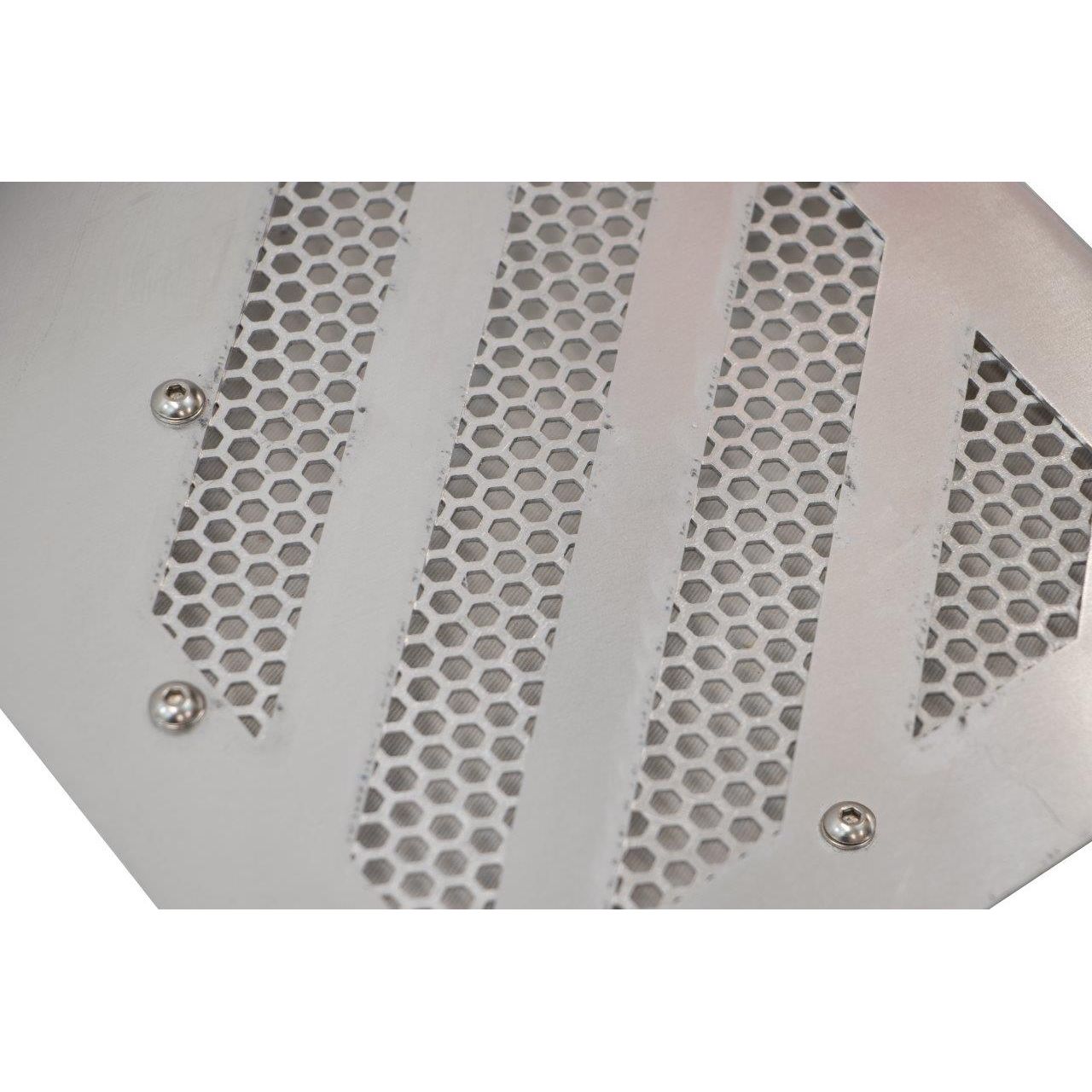 Product Details Fits 2018 to Current JL Wrangler, Rubicon and Unlimited Fits 2020 to Current JT Gladiator 2 and 4-Door Models Made from Raw Aluminum Fishbone logo laser cut on inners Front Set Only These are only the inner panels Removable Cooling Vents and Accent Plates for Custom Paint